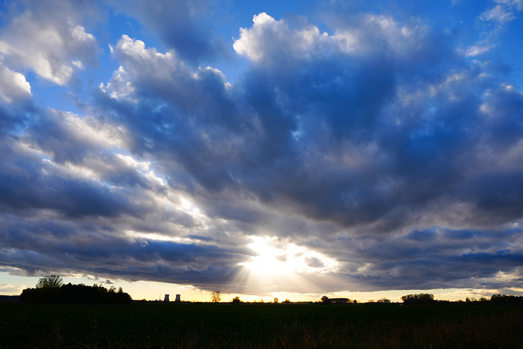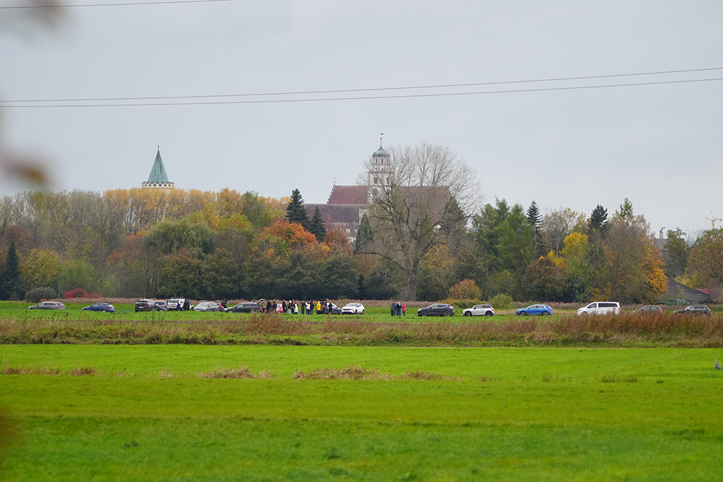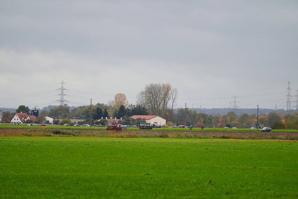 Wie viele Interessierte finden wir uns bereits um 11:15 Uhr im Donauried ein, um Zeugen der Sprengung beider Kühltürme am AKW Gundremmingen sein zu können. Angesetzt ist das Spektakel für 12:00 Uhr. Wir warten also geduldig auf unserem Posten mit optimaler Sicht unter widrigen Wetterverhältnissen: Starker Wind und Regen. Da müssen wir jetzt durch!