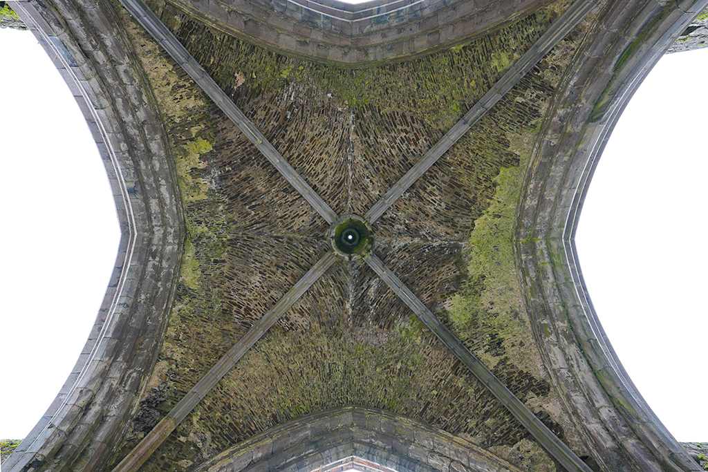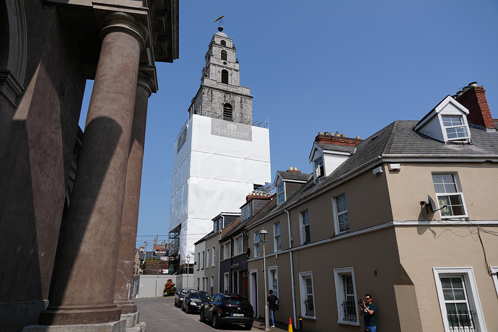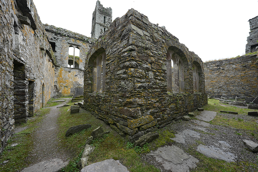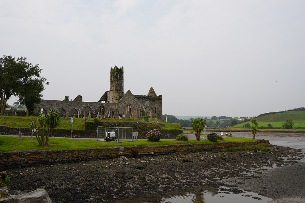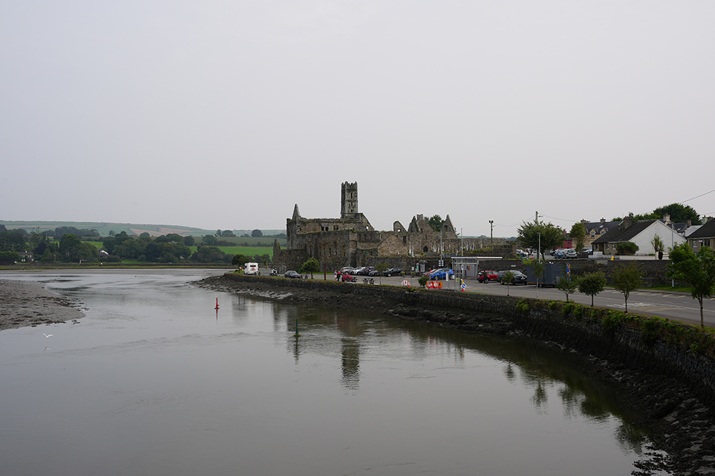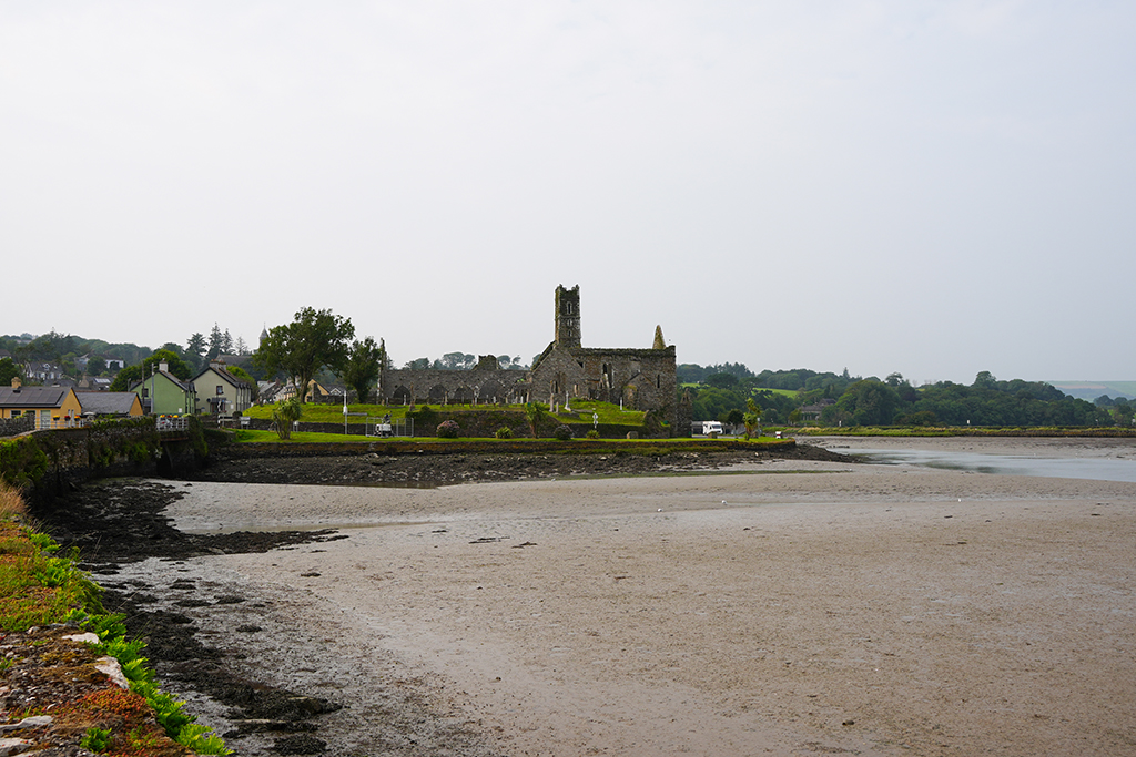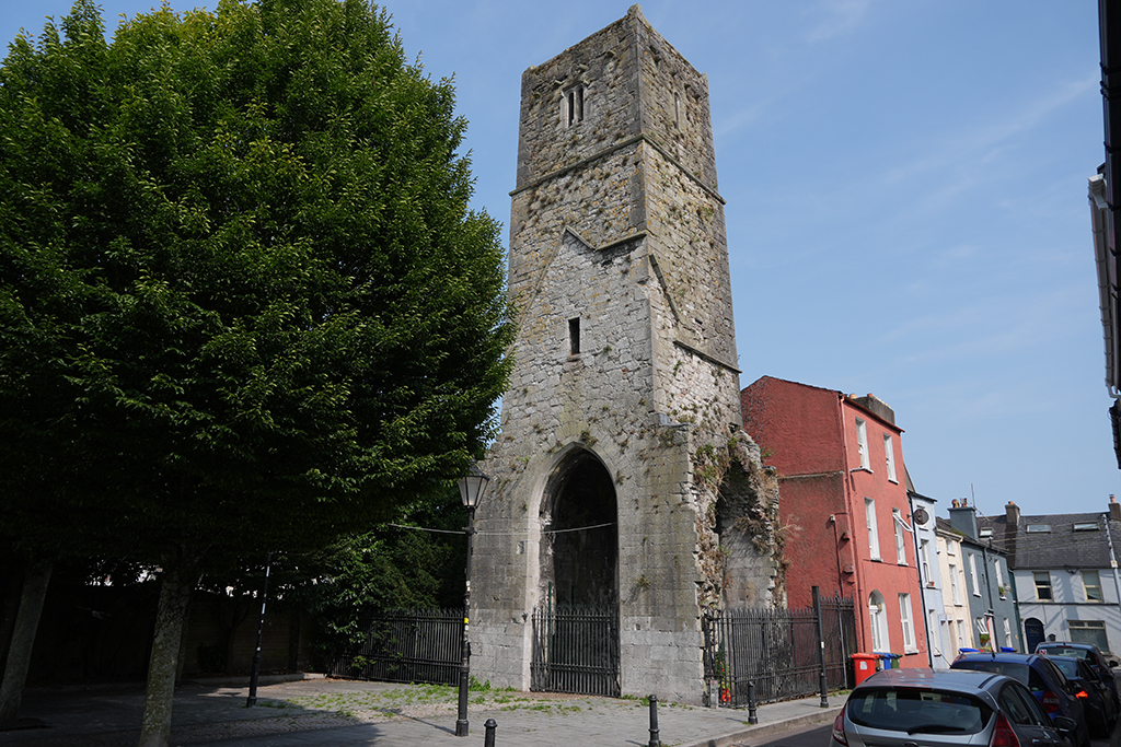 Turm der zerstörten „Red Abbey“. Das älteste Gebäude der Stadt.