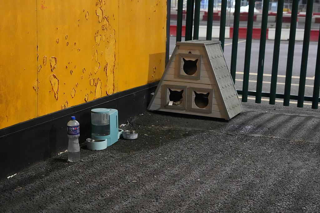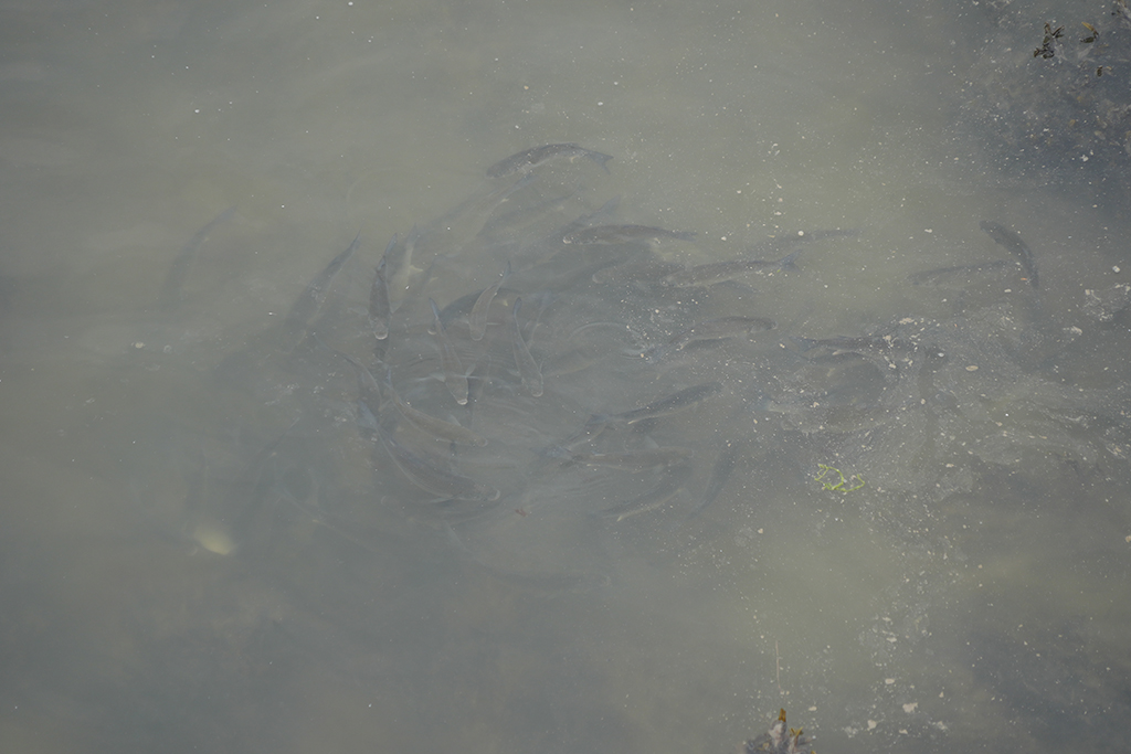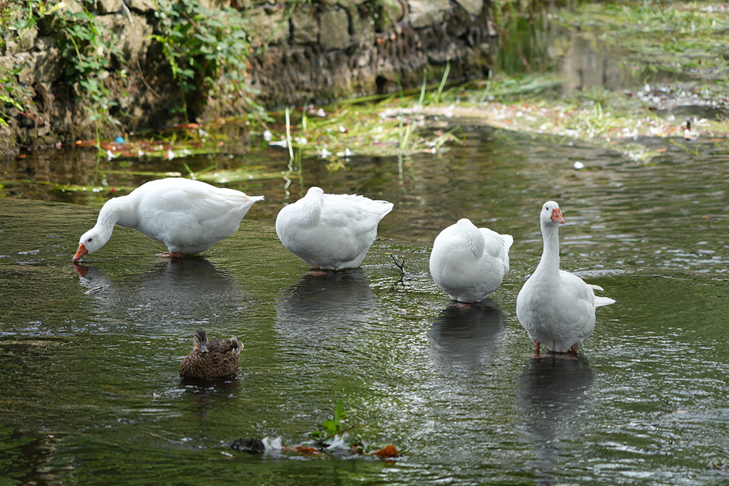 Hier lauern die Gänse und ein paar Enten auf Futternachschub aus dem Automaten.