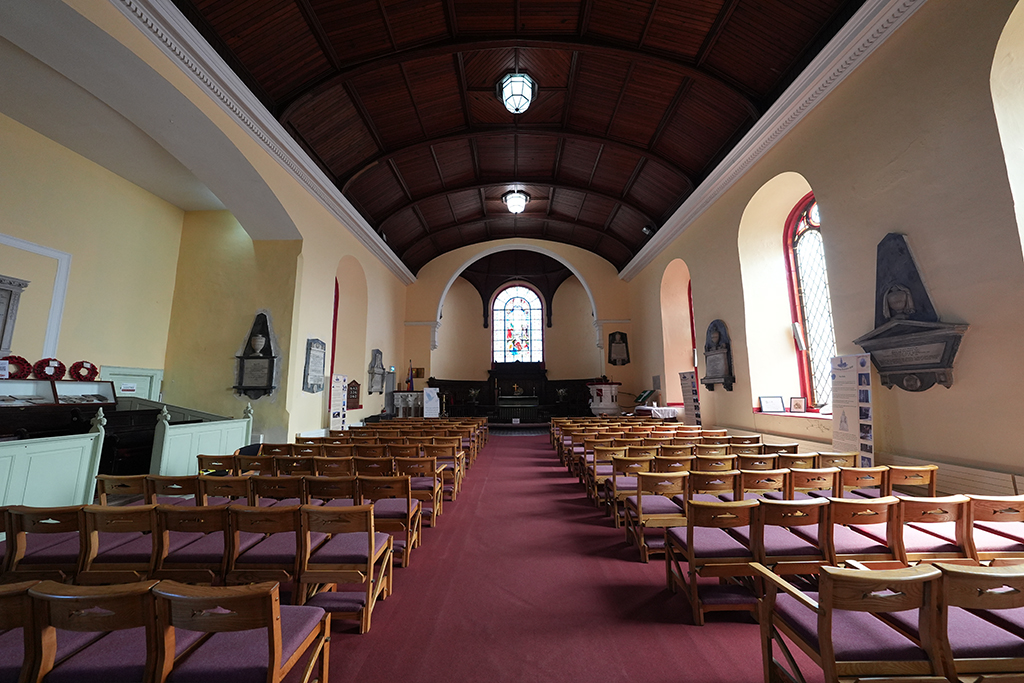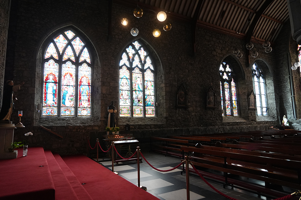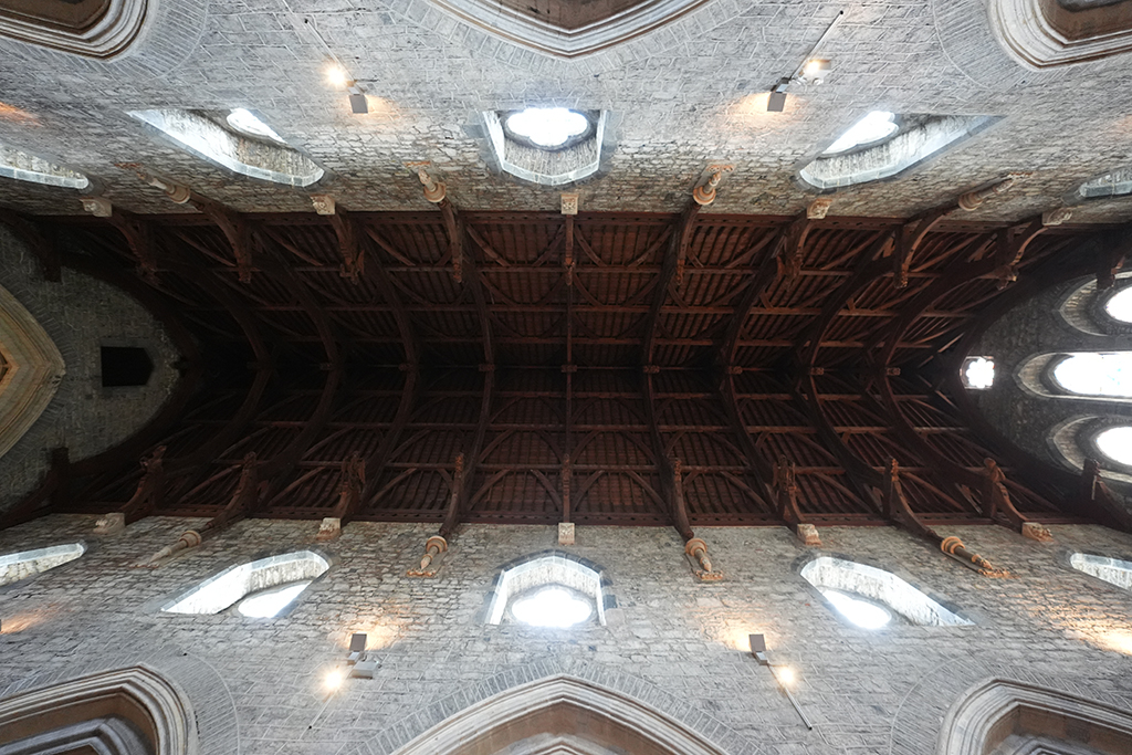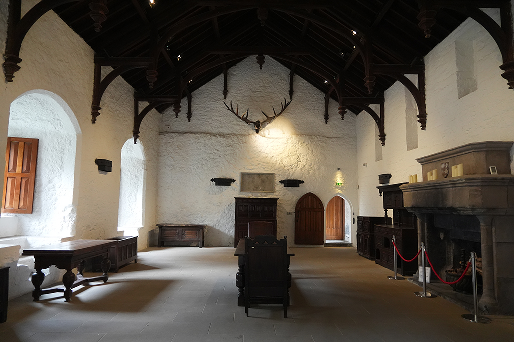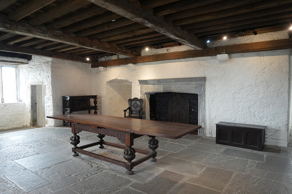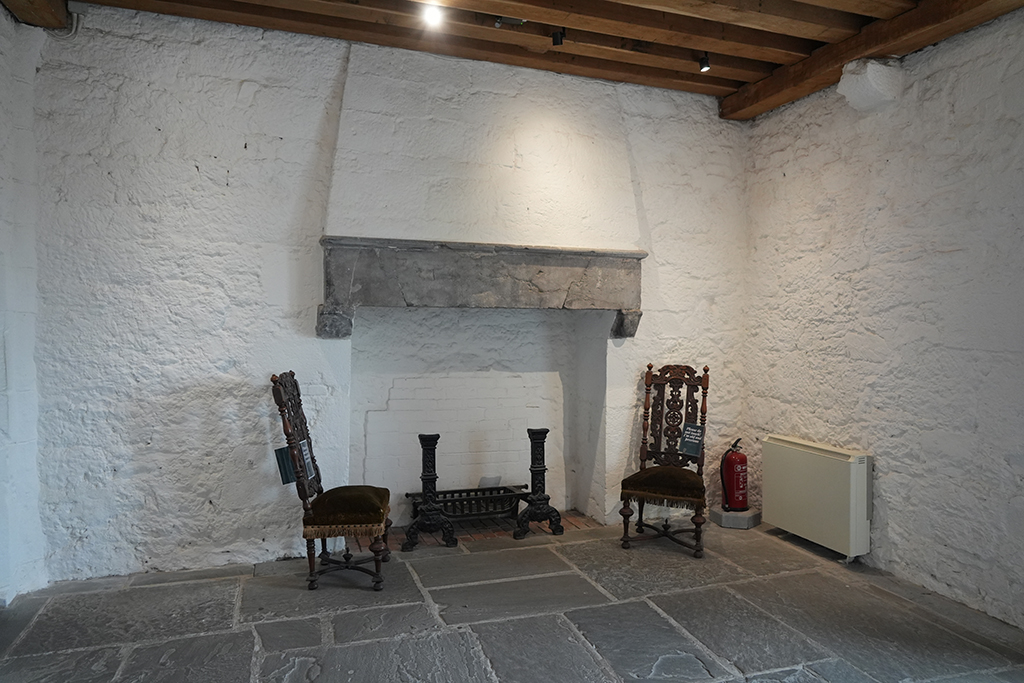 Aufenthaltsraum und Kapelle des ehemaligen mittelalterlichen Chores. Der Filmraum war der Schlafraum.