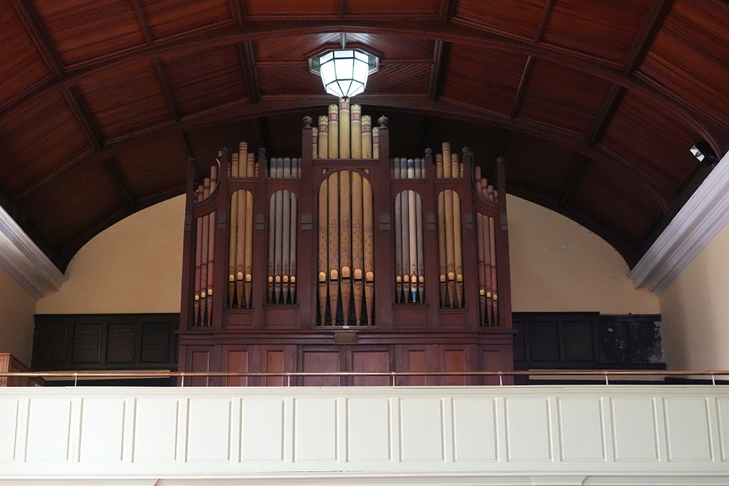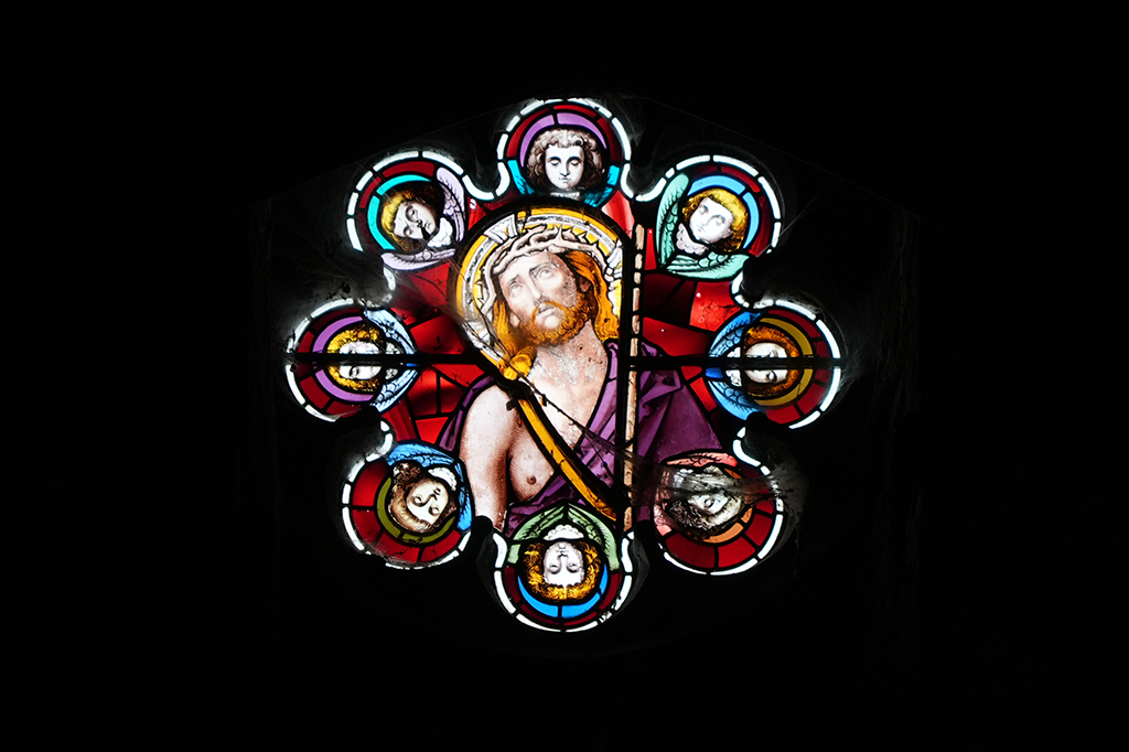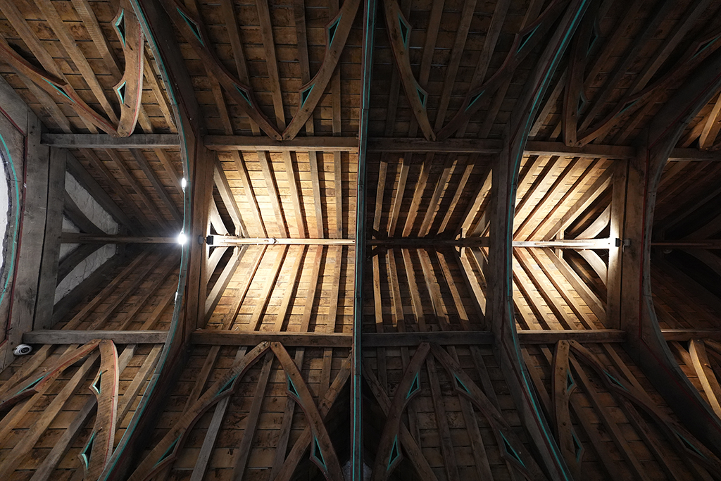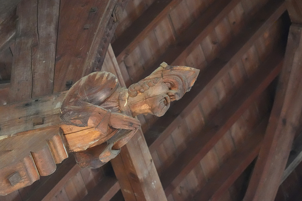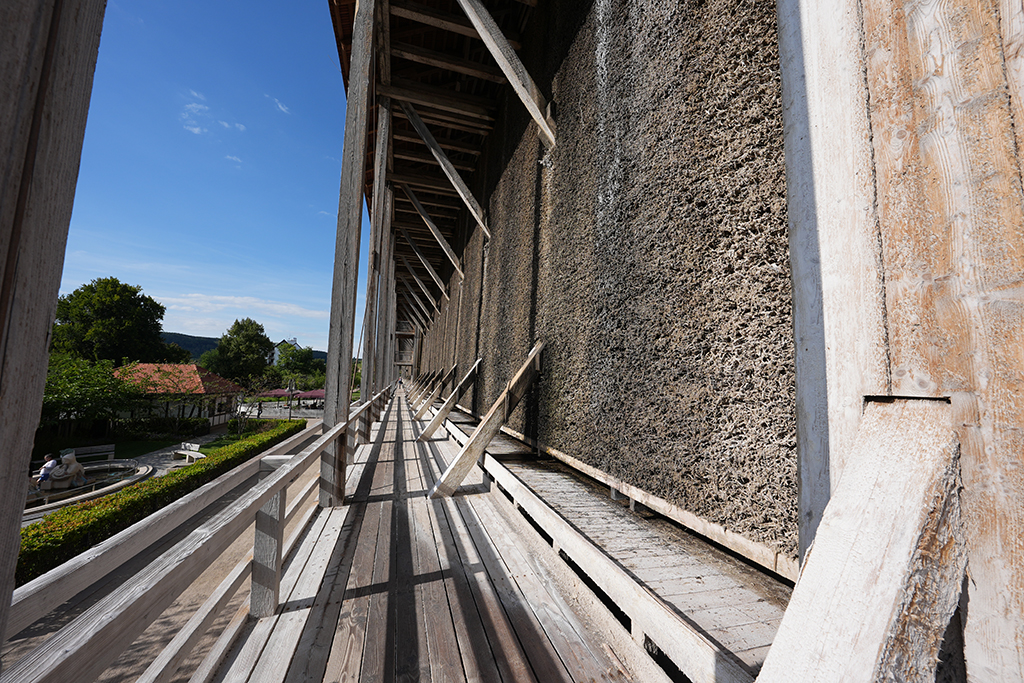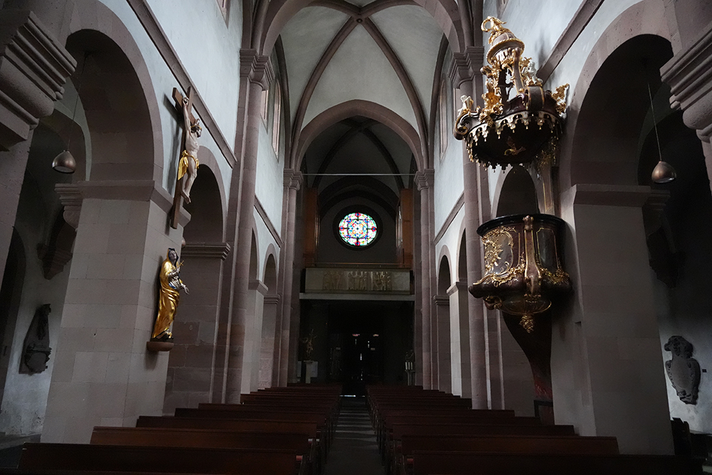 Diese Tür war lange Zeit zugemauert (Curtain Wall), damit (hinten) die Katholiken und (vorne) die Evangelen gleichzeitig Gottesdienst feiern konnten.
