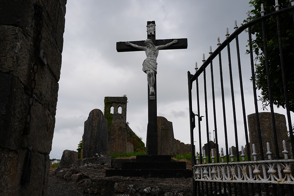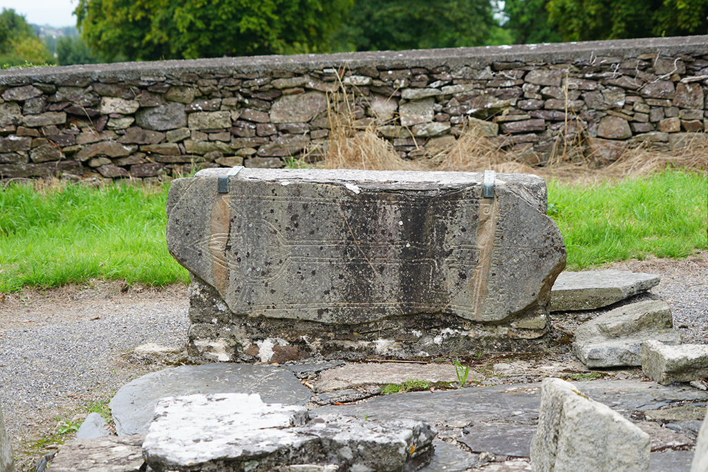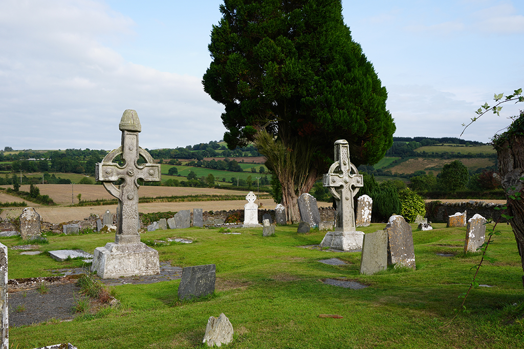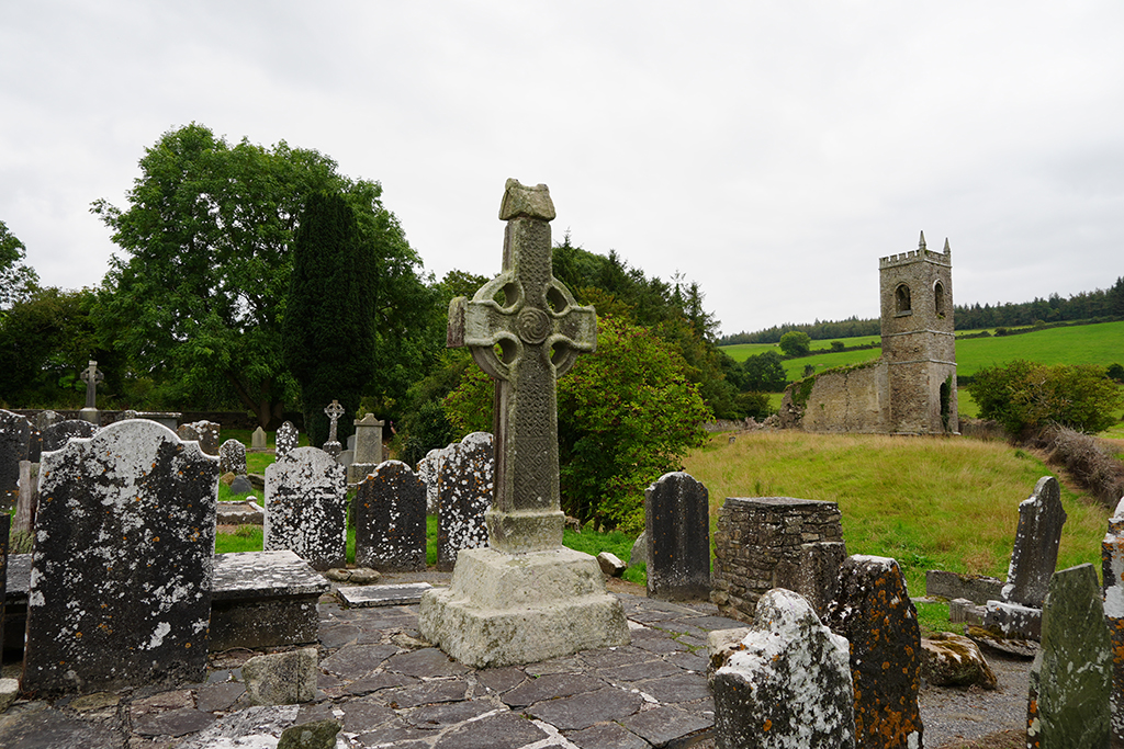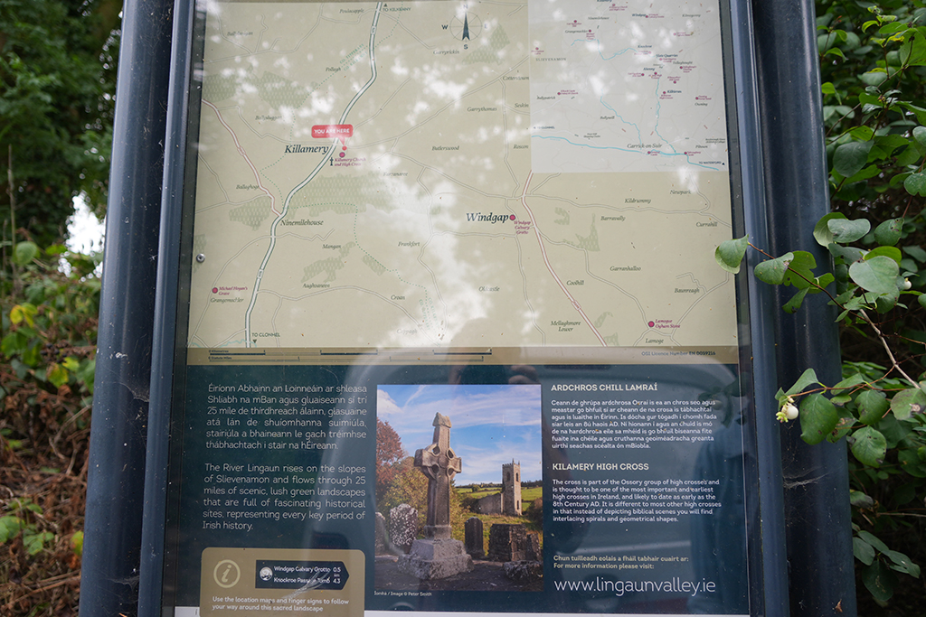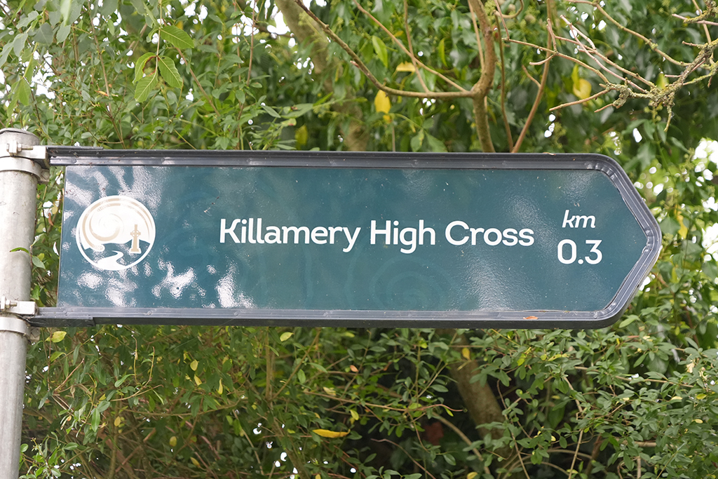 In Killamery legen wir eine kurze Pause ein, um das High Cross zu besichtigen.