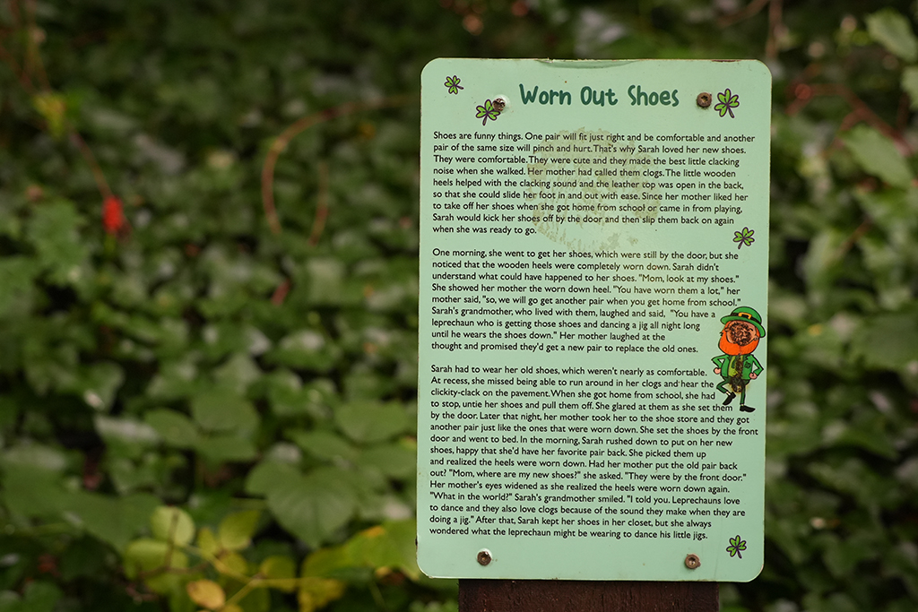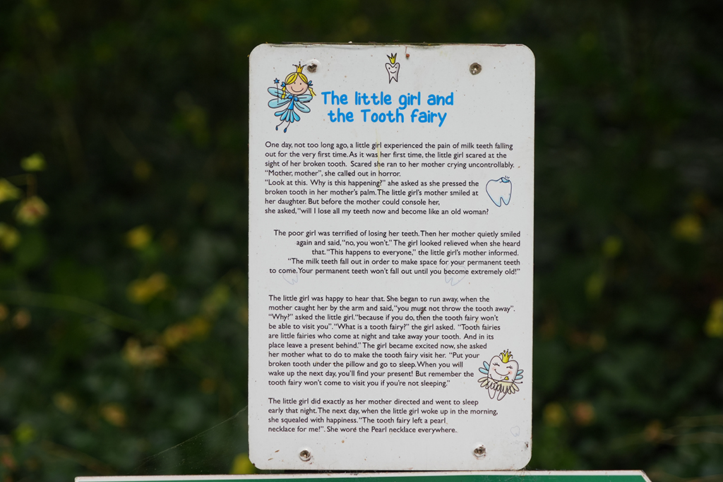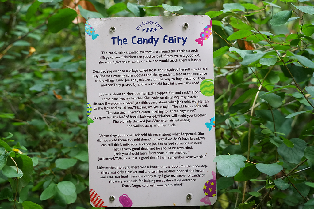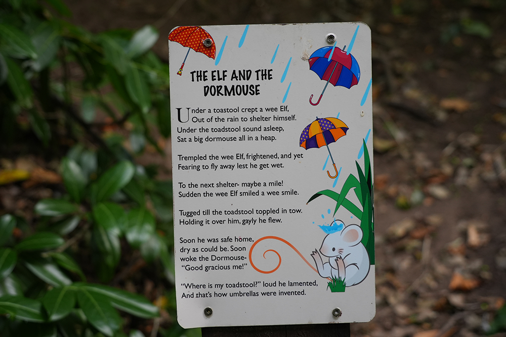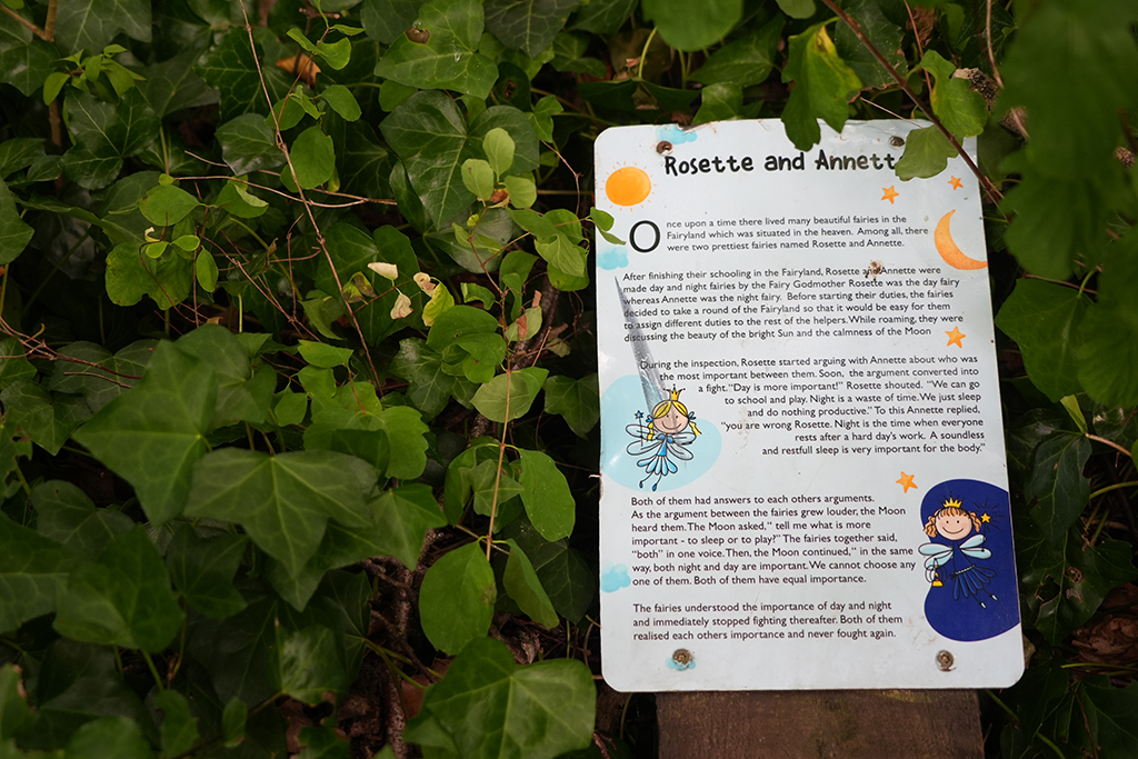 Auf dem Swiss Cottage Walk wird uns der Weg durch allerlei nette Geschichten und liebevoll gestaltete Kleinigkeiten verkürzt.