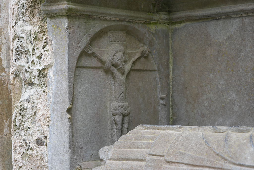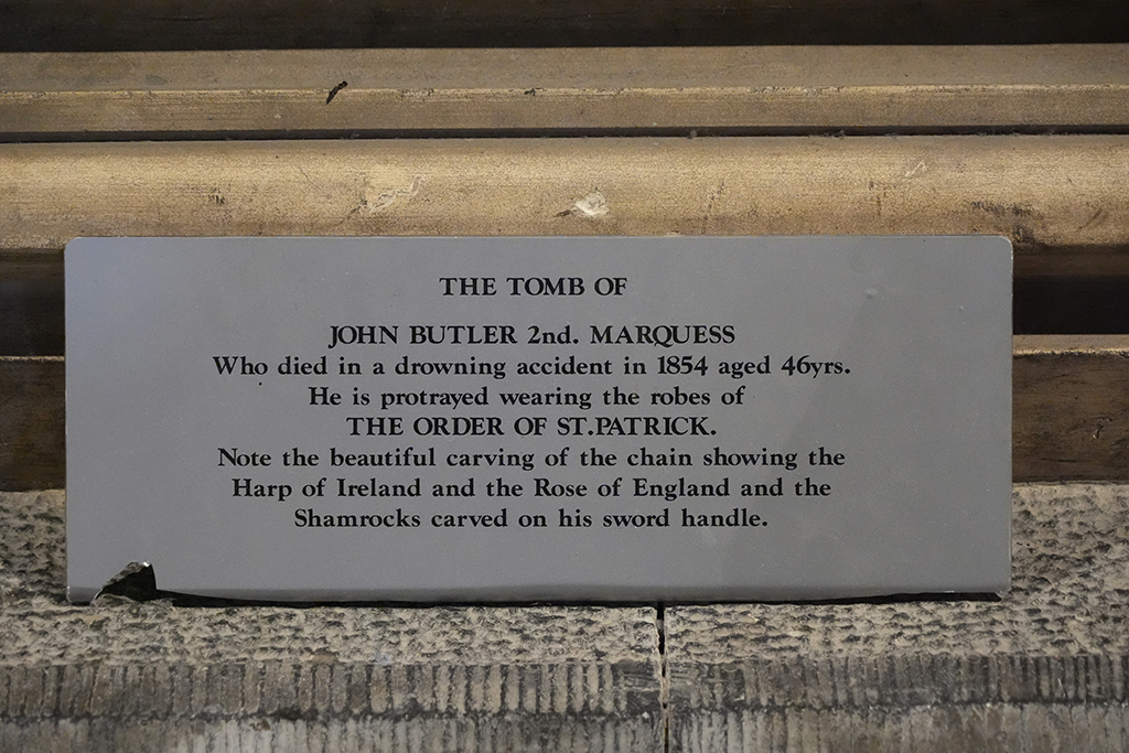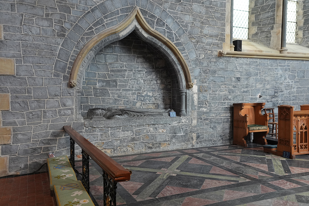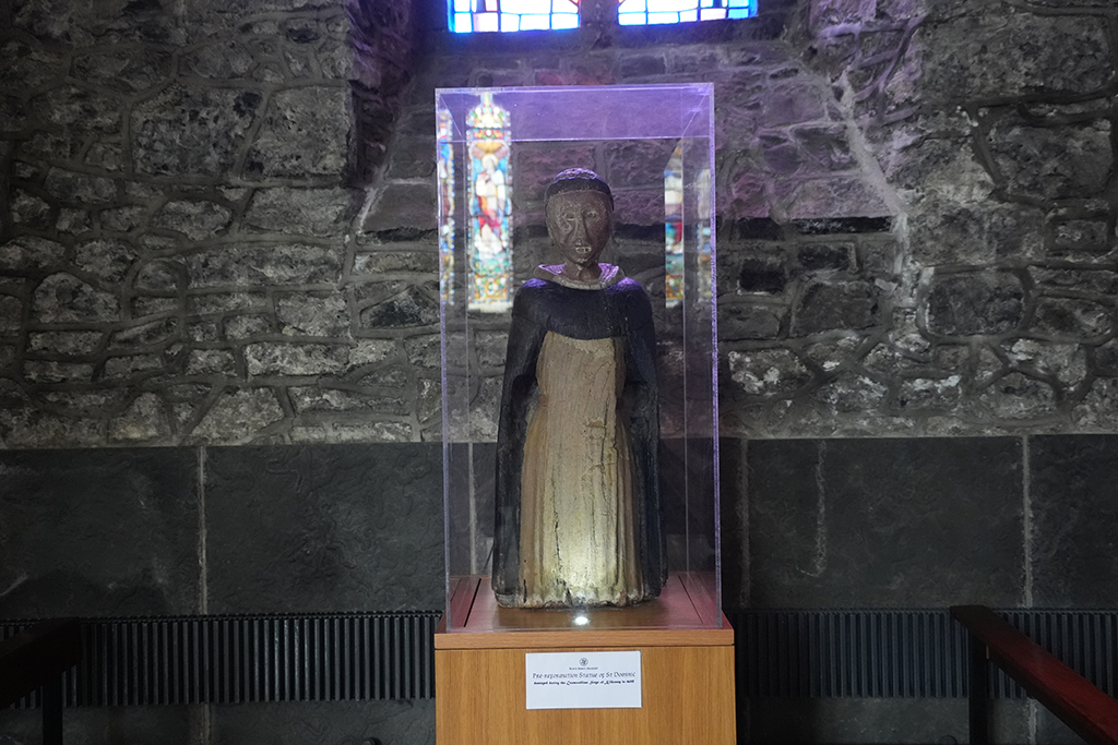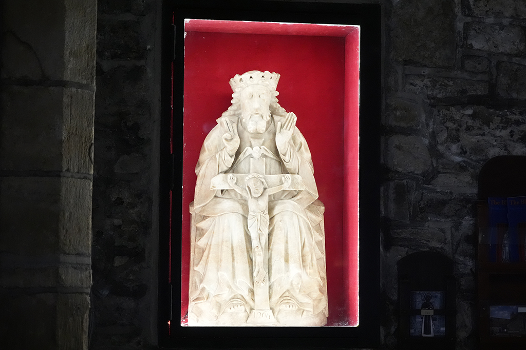 Alabasterstatue der „Holy Trinity“ aus dem 15. Jahrhundert. War Jahrhunderte lang zum Schutz vor Plünderung in einer Mauer versteckt, bis sie im 19. Jahrhundert zufällig wiedergefunden wurde.