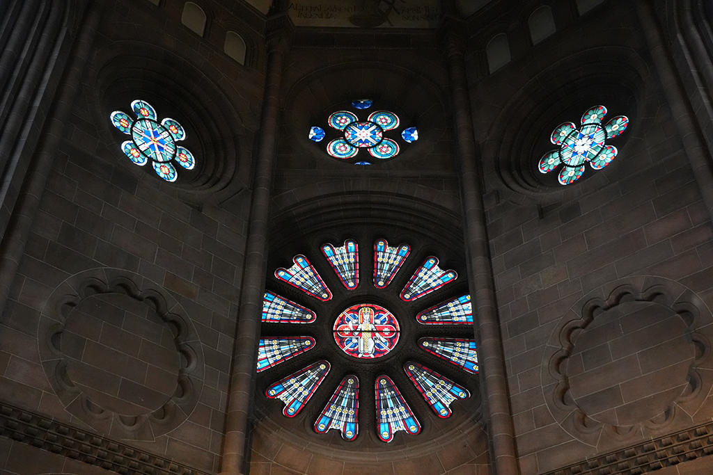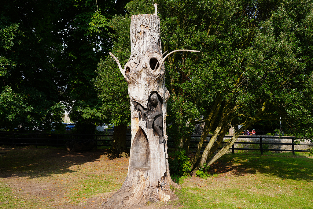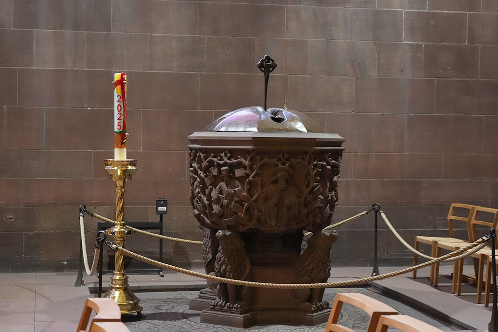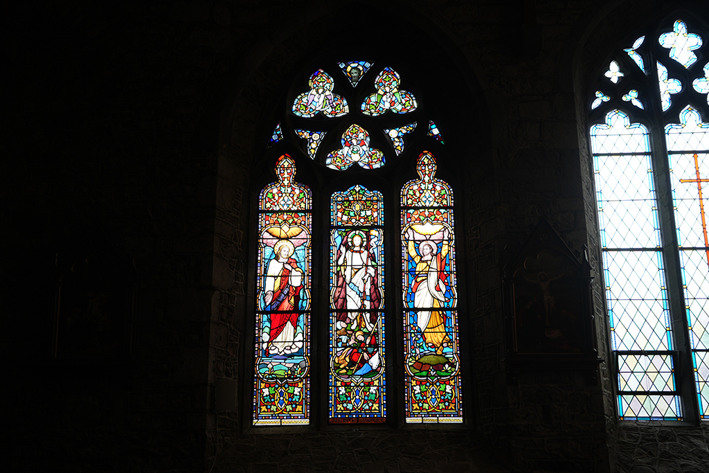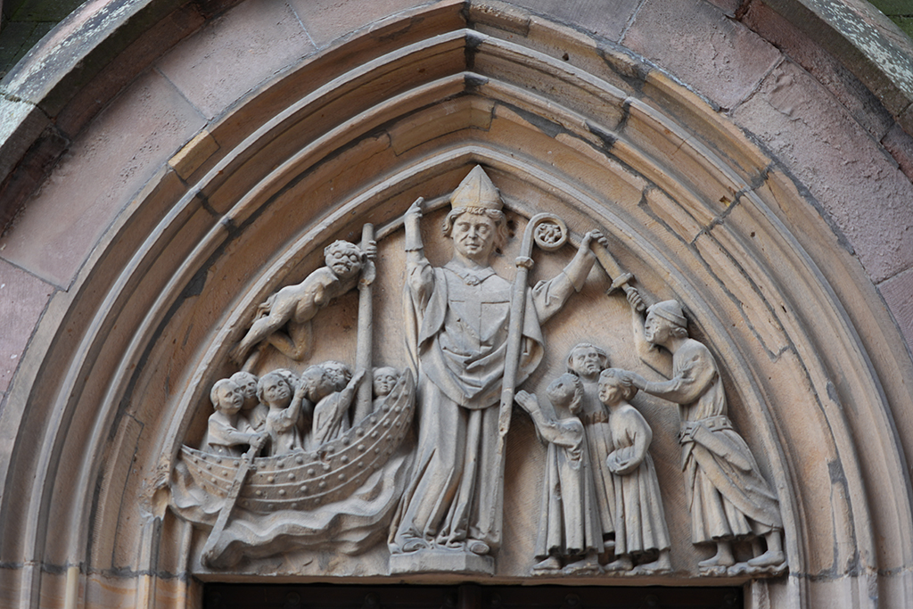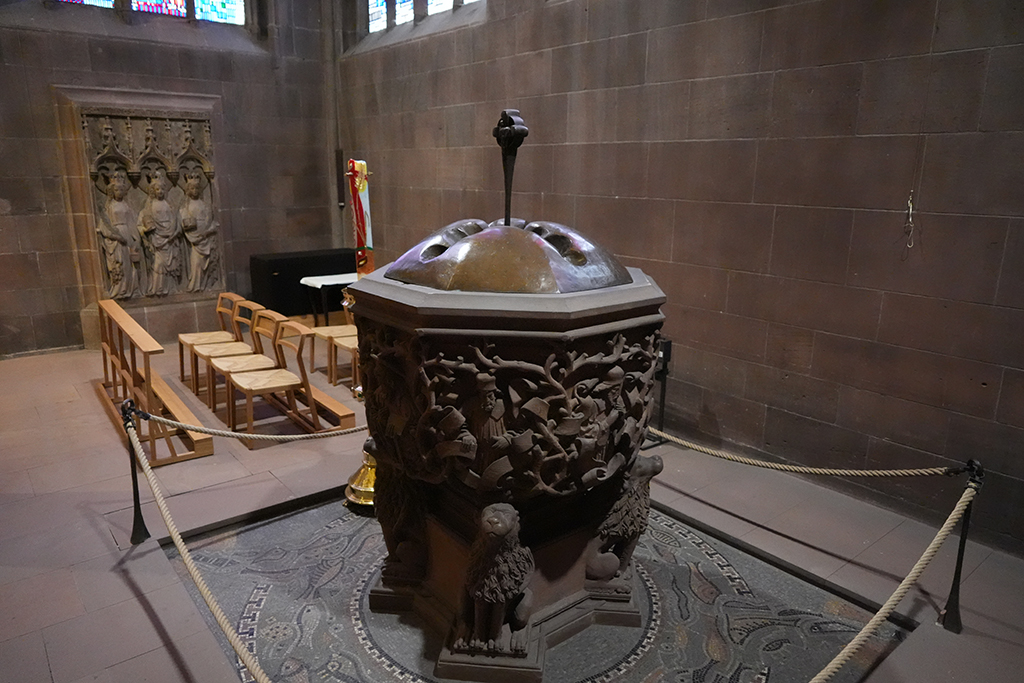 Alabasterstatue der „Holy Trinity“ aus dem 15. Jahrhundert. War Jahrhunderte lang zum Schutz vor Plünderung in einer Mauer versteckt, bis sie im 19. Jahrhundert zufällig wiedergefunden wurde.