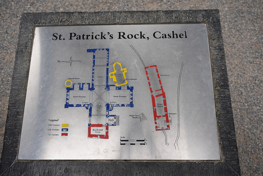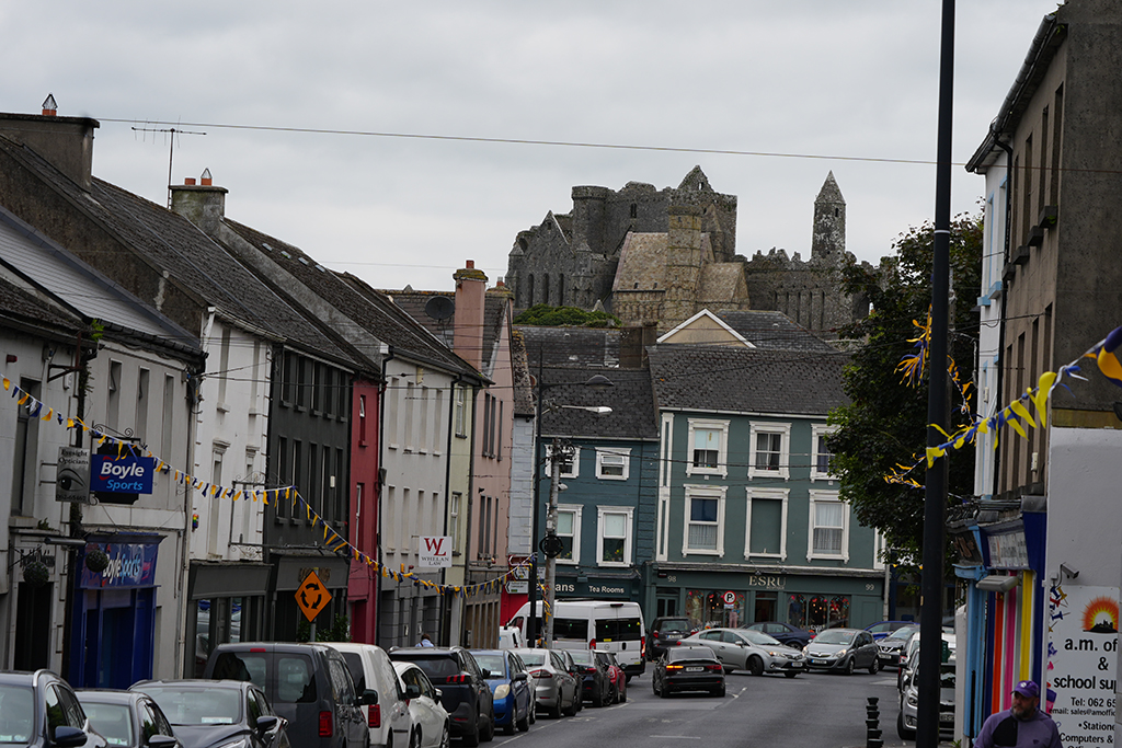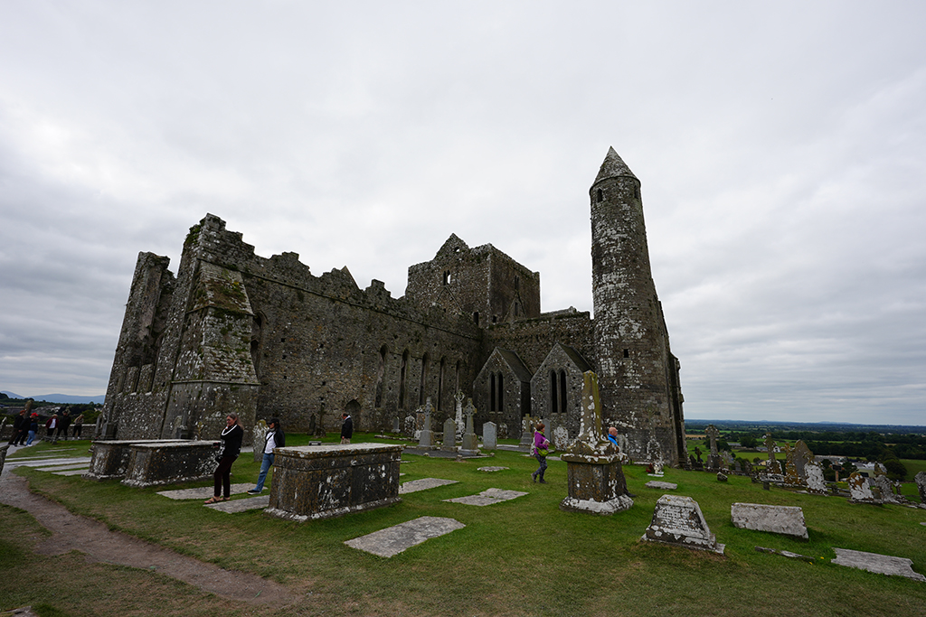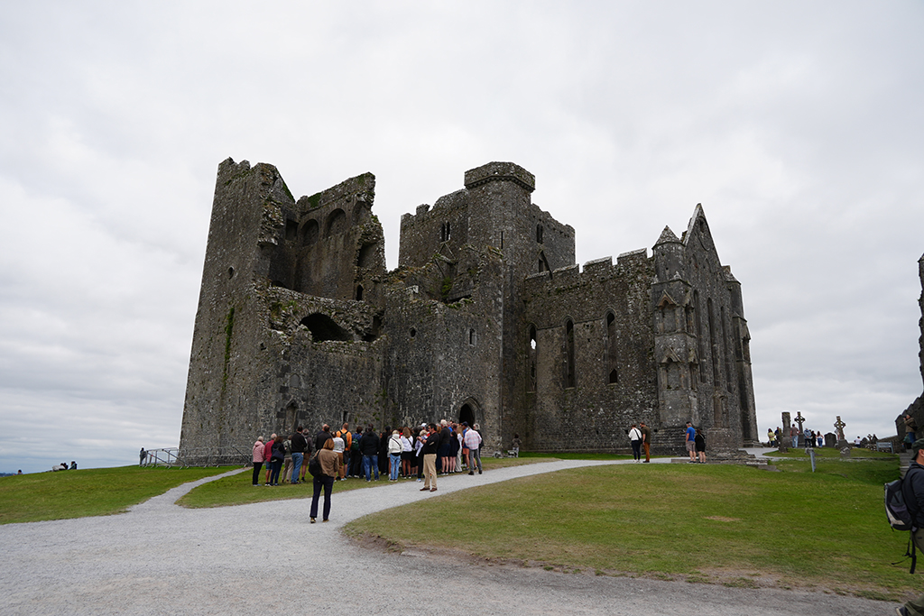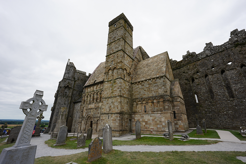 Im Vordergrund die frisch gereinigte Cormac´s Chapel. Nach dem Rundturm (1101) das älteste Gebäude auf dem Gelände. Dafür ließ der damalige König Cormac um 1130 extra Baumeister aus Regensburg einfliegen.