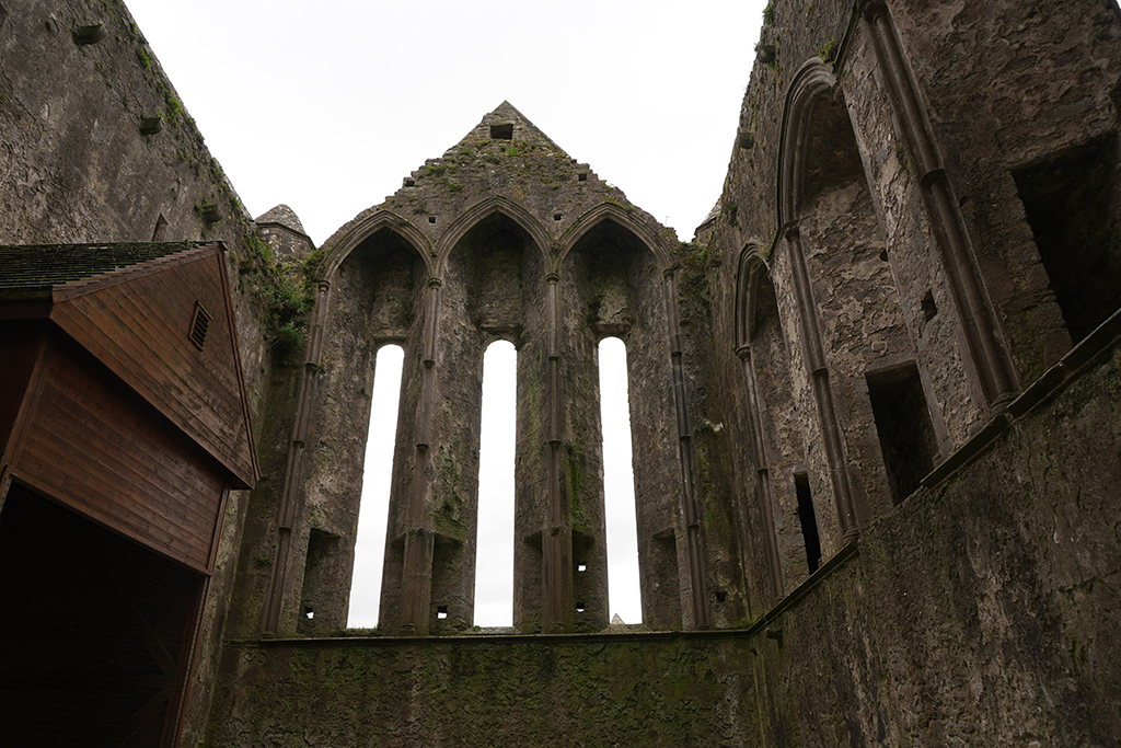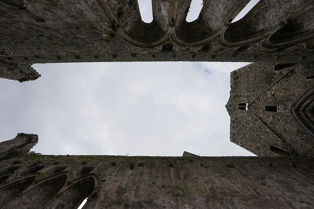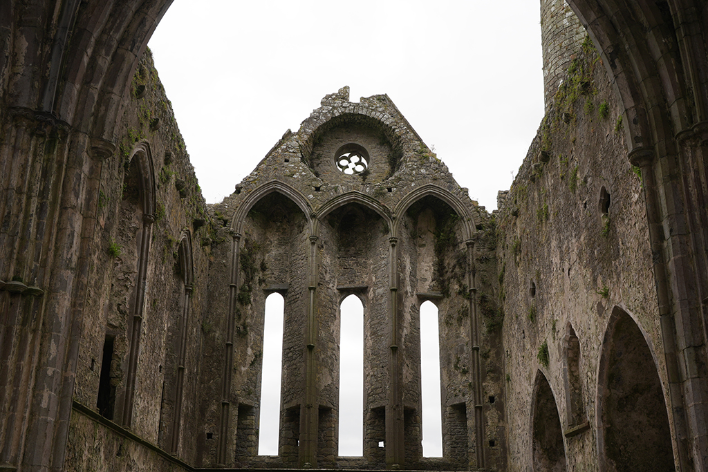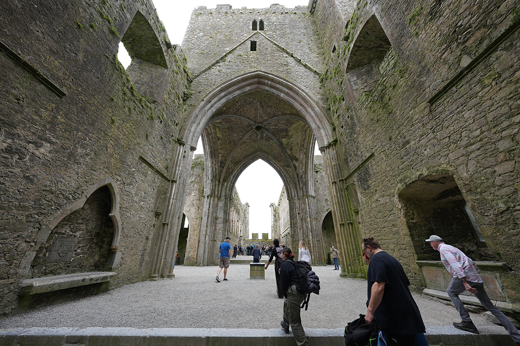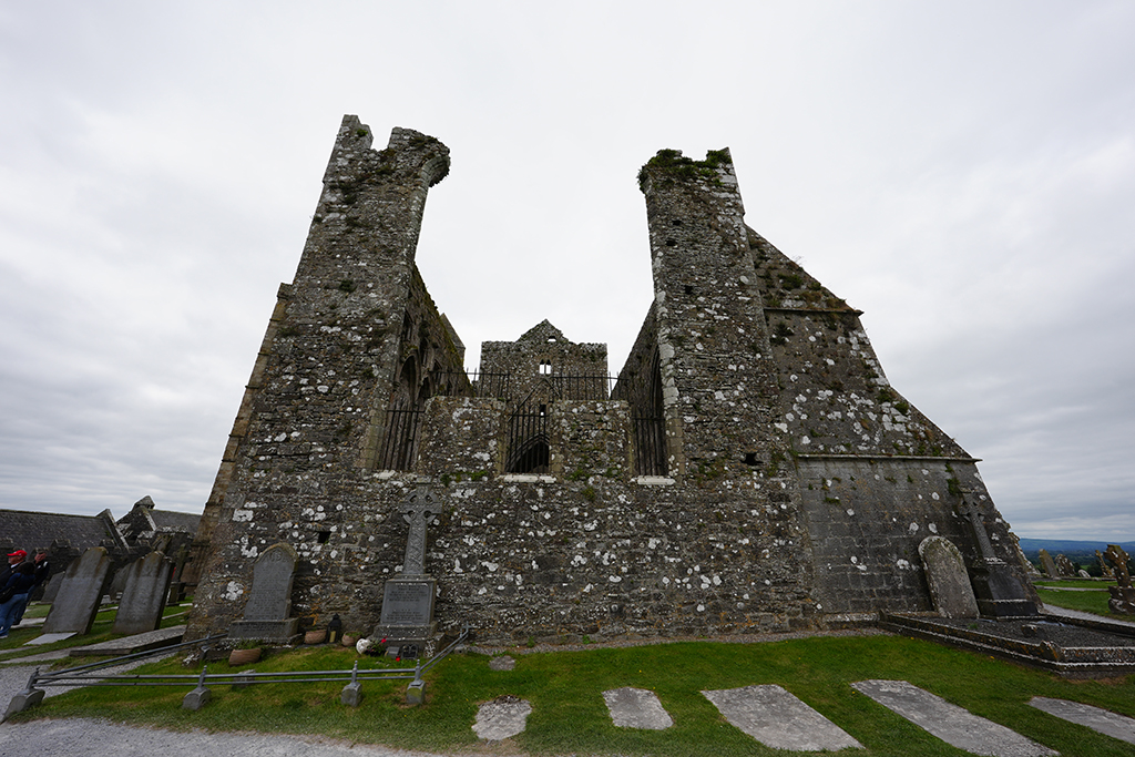 Im Vordergrund die frisch gereinigte Cormac´s Chapel. Nach dem Rundturm (1101) das älteste Gebäude auf dem Gelände. Dafür ließ der damalige König Cormac um 1130 extra Baumeister aus Regensburg einfliegen.