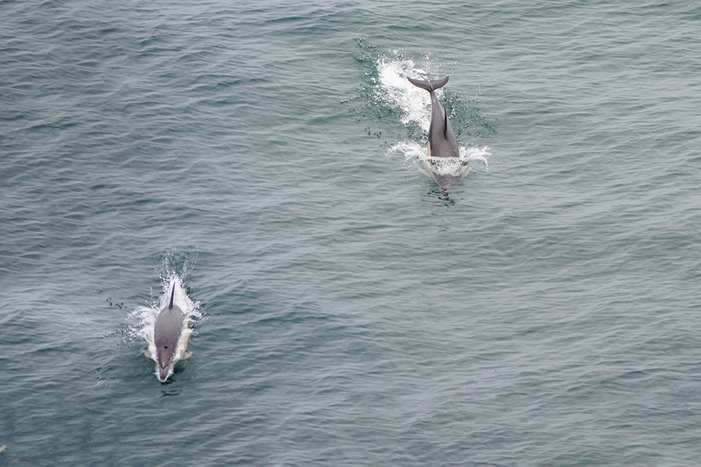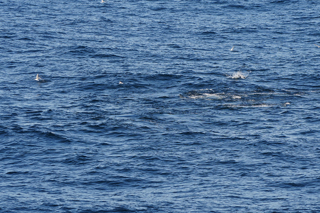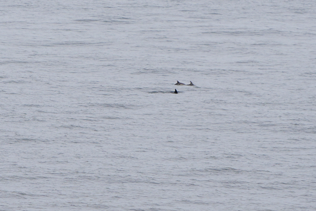 Plötzlich von der Seite eine kleine, sich tummelnde Delfinschule. (Daher der Begriff „Tümmler“?)