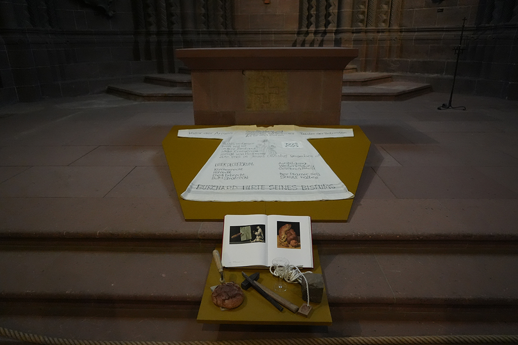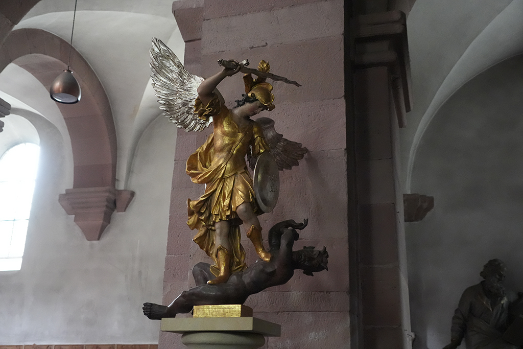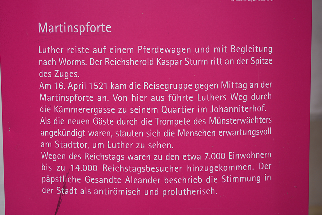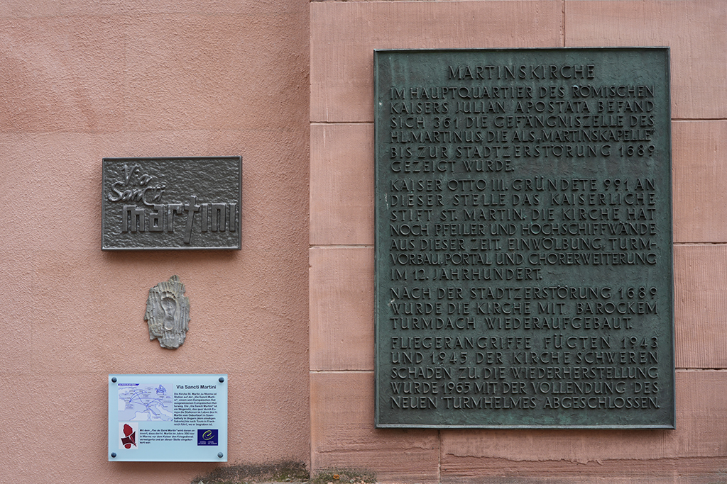 Im Jahr 356 diente Martin als Soldat im Krieg gegen die Alamannen und war in Worms stationiert. Vor einer Schacht gegen die Germanen verweigerte er den Dienst und erklärte, dass er von nun an ein „Miles Christi“ sei. Daraufhin wurde er an der Stelle, an der heute die Martinskirche steht, inhaftiert.