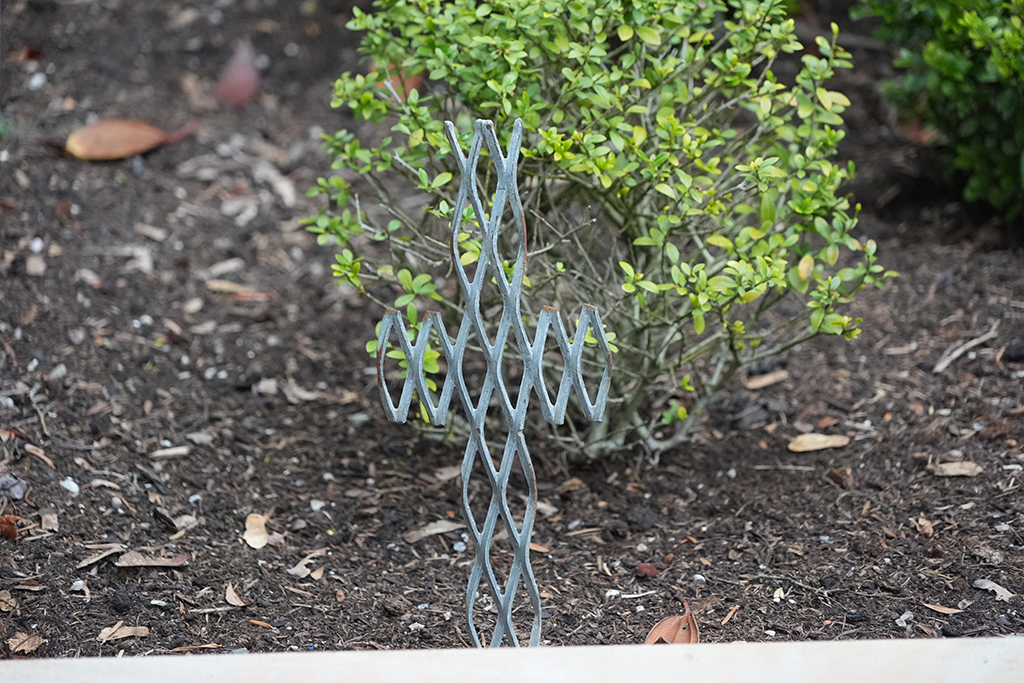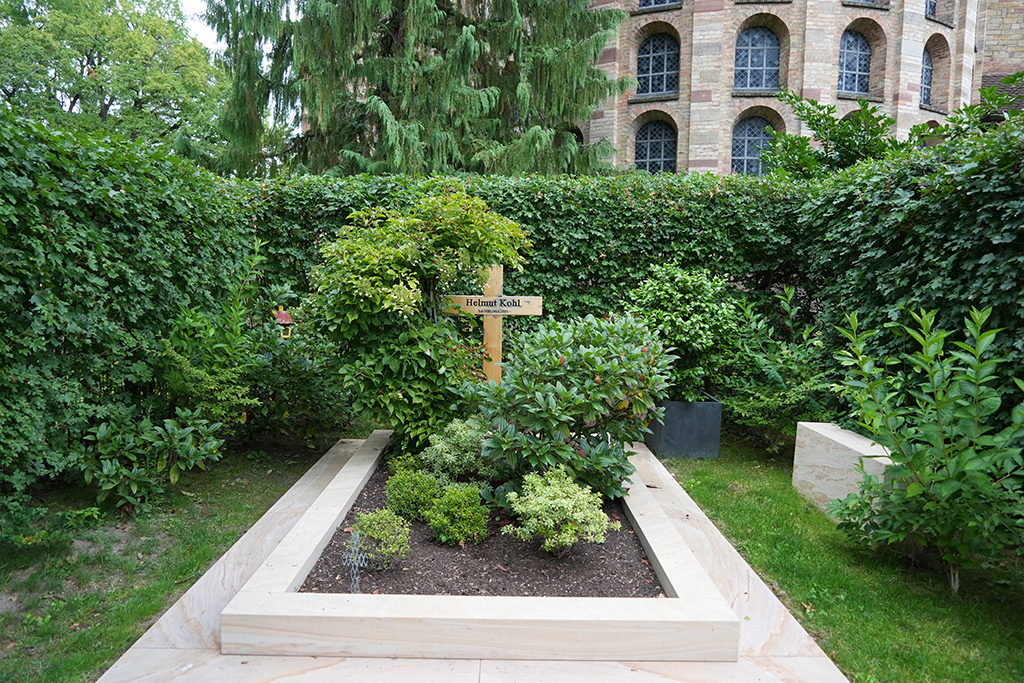 Unscheinbar am äußeren linken Rand seiner Ruhestätte bezeugt ein Stück Zaun in Form eines Kreuzes Alt-Kanzler Kohls ganz besonderen Bezug zur Geschichte Deutschlands.