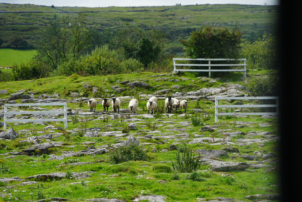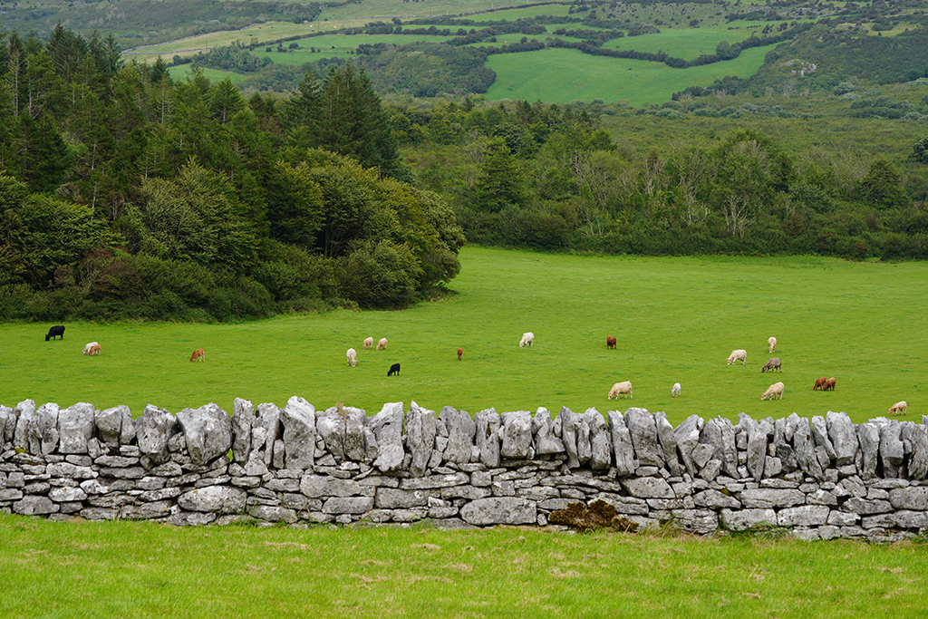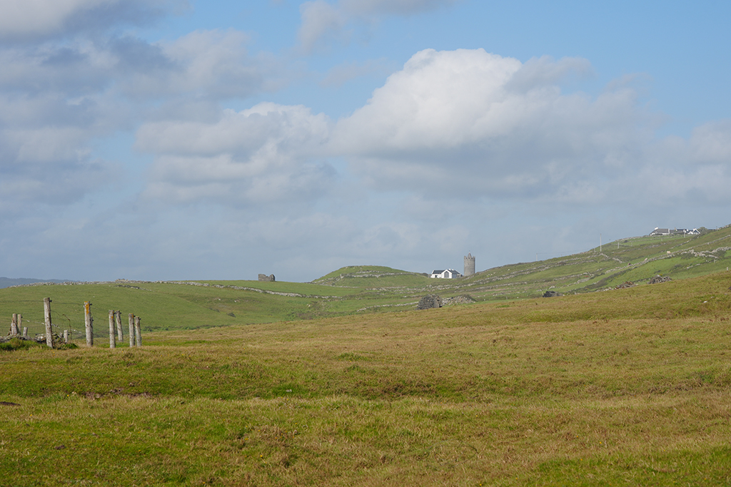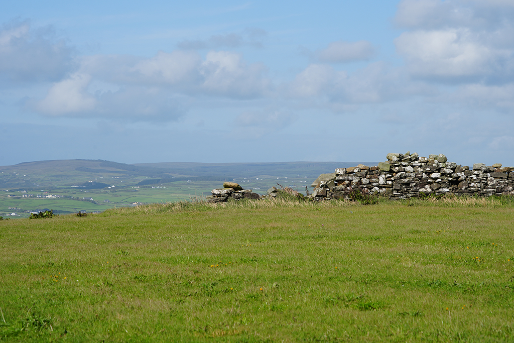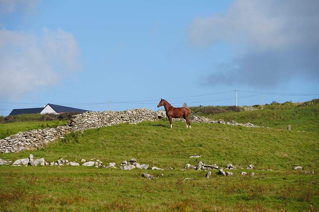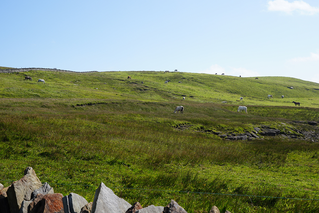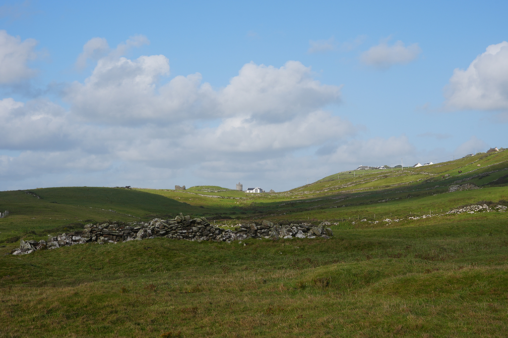 Auf klassische irische Landschaften freuen wir uns heute. Der Himmel hat sich zwar mit reichlich Wolken verkleidet aber fürs Foto ist das oft ganz reizvoll.