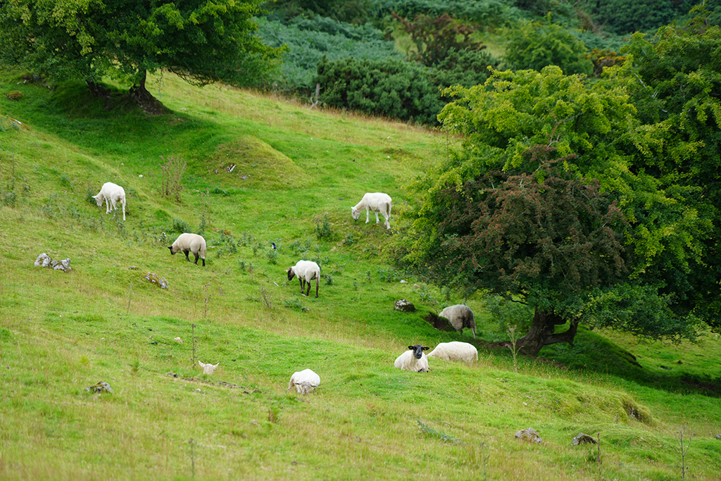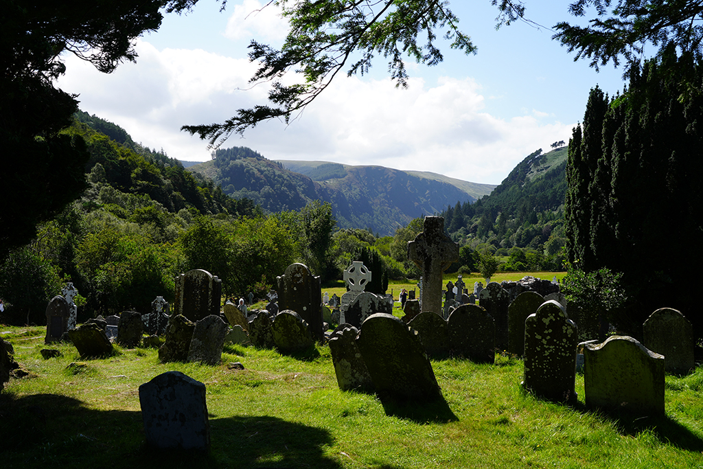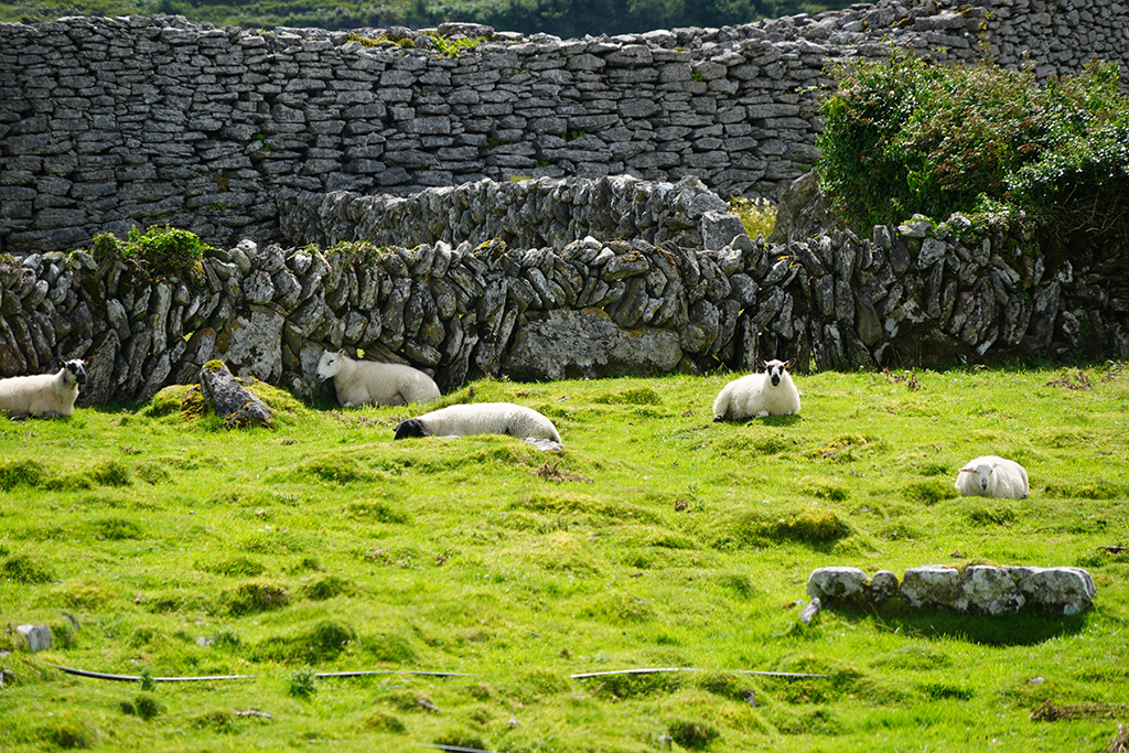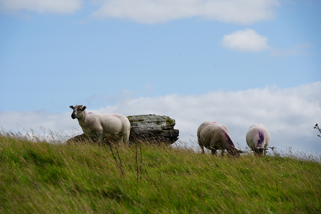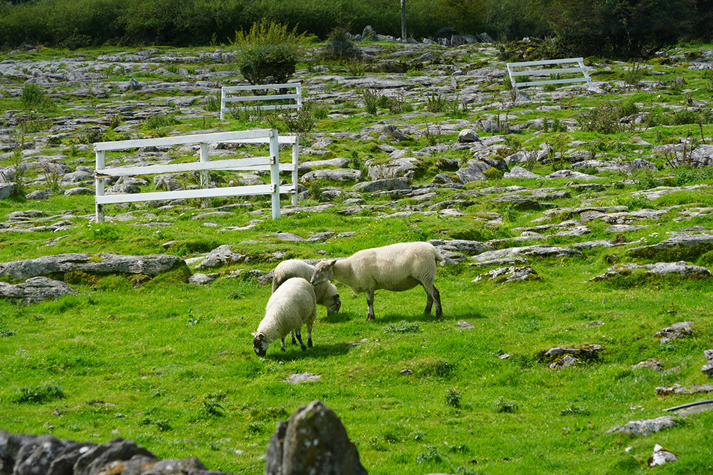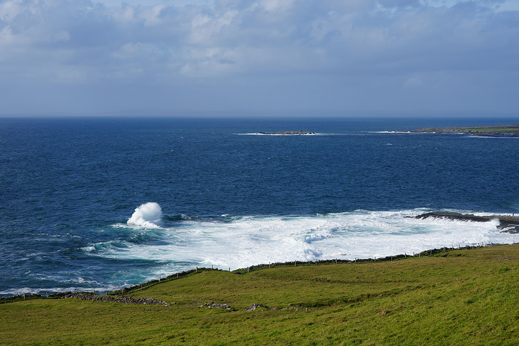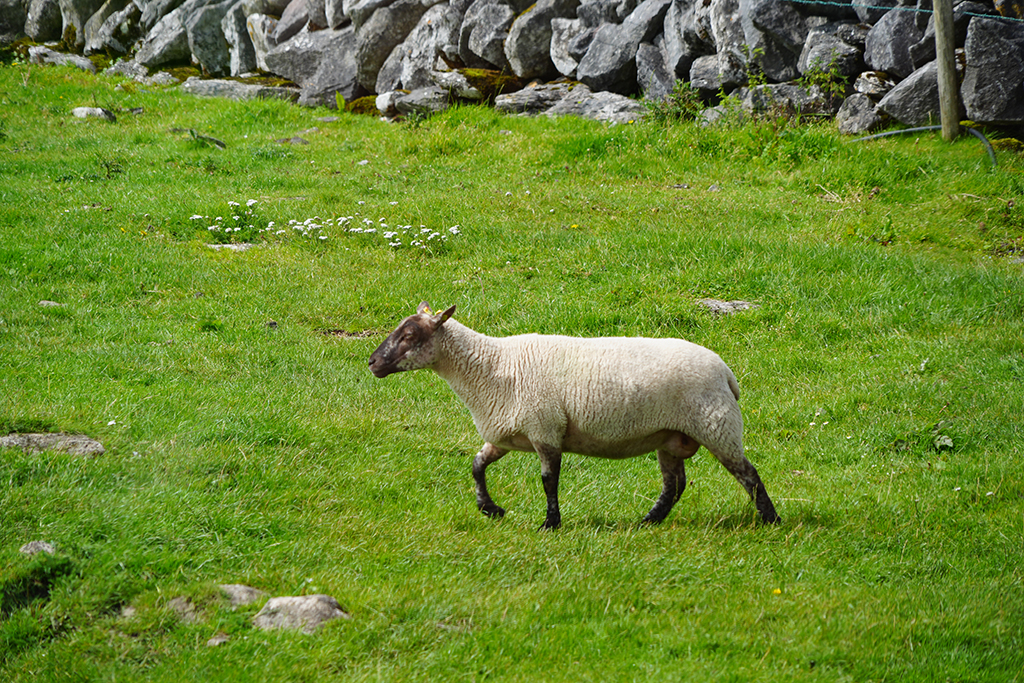 Auf klassische irische Landschaften freuen wir uns heute. Der Himmel hat sich zwar mit reichlich Wolken verkleidet aber fürs Foto ist das oft ganz reizvoll.
