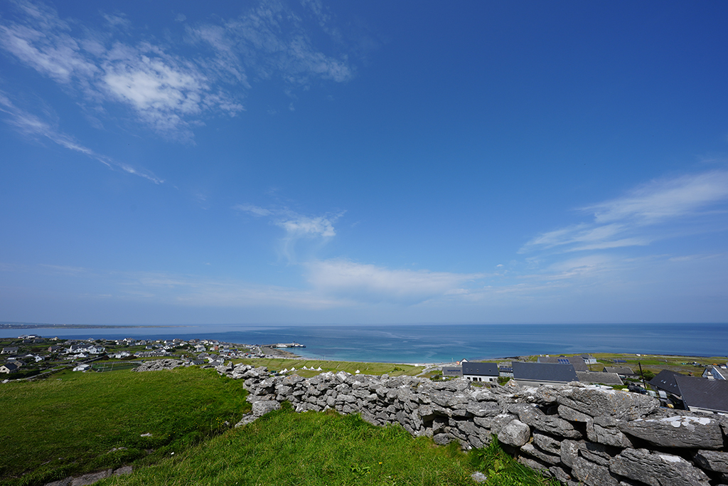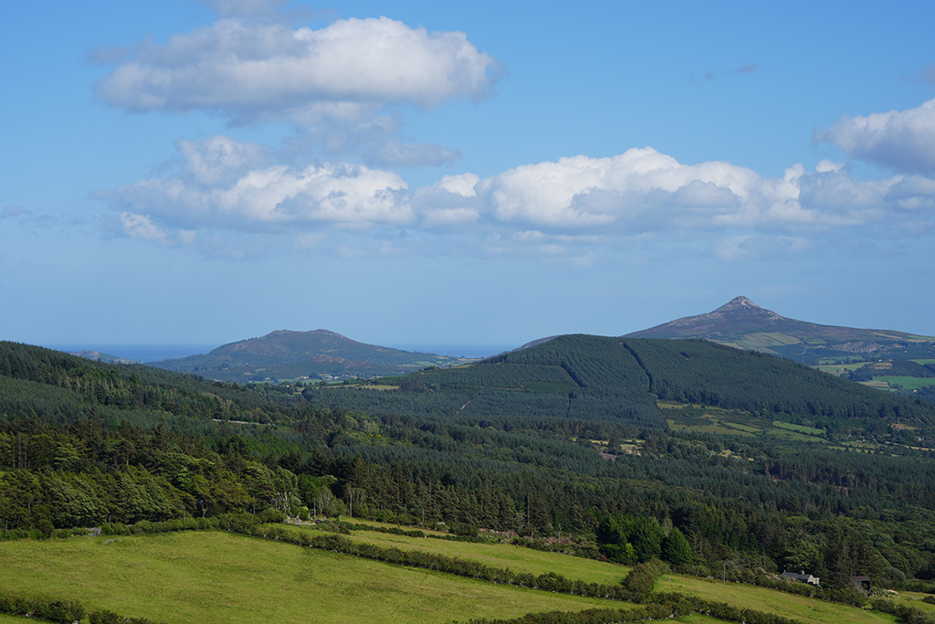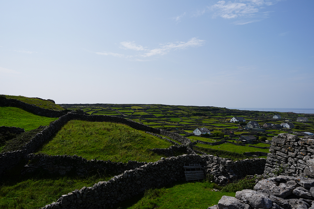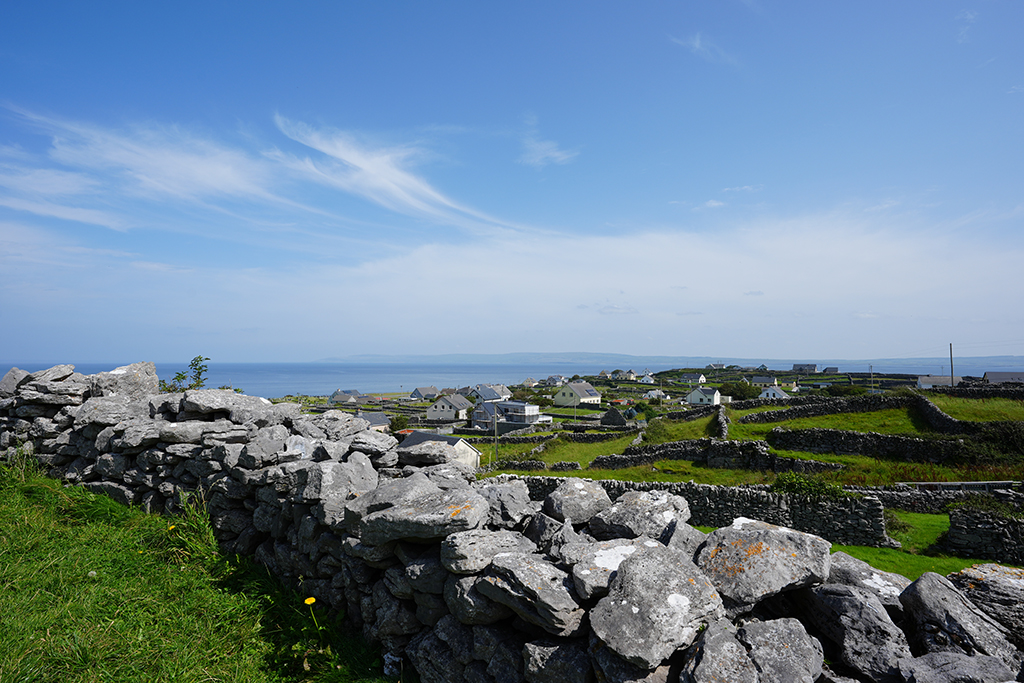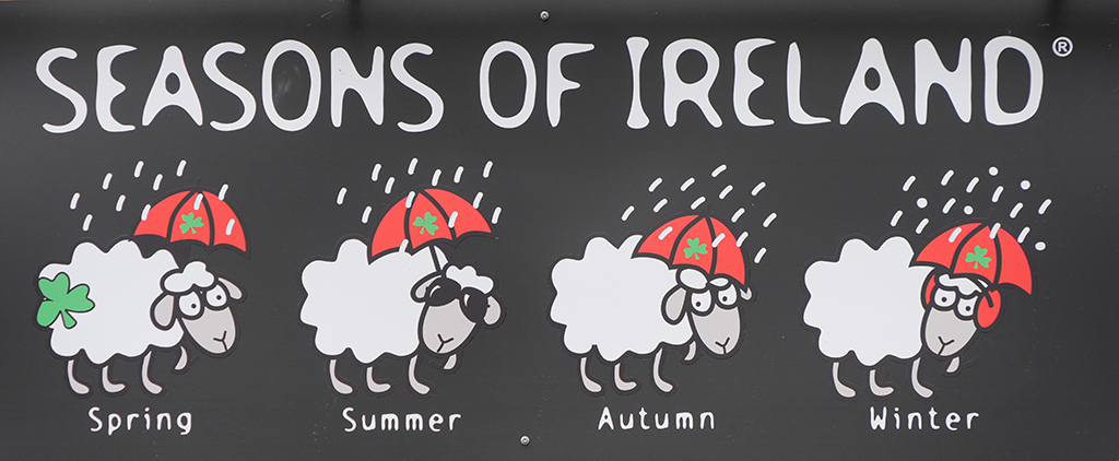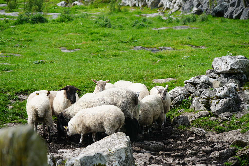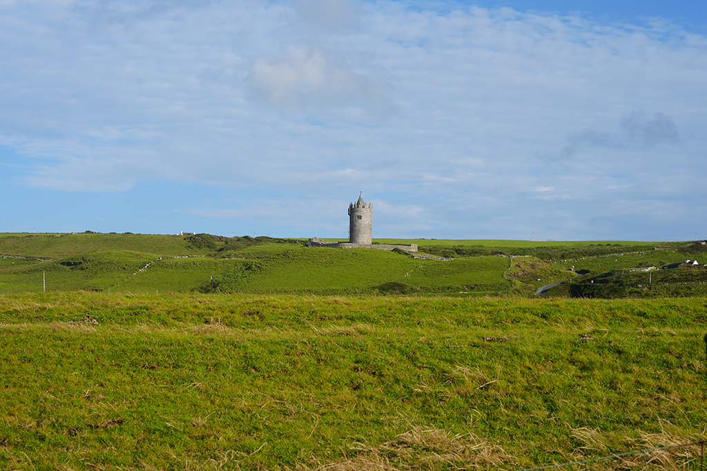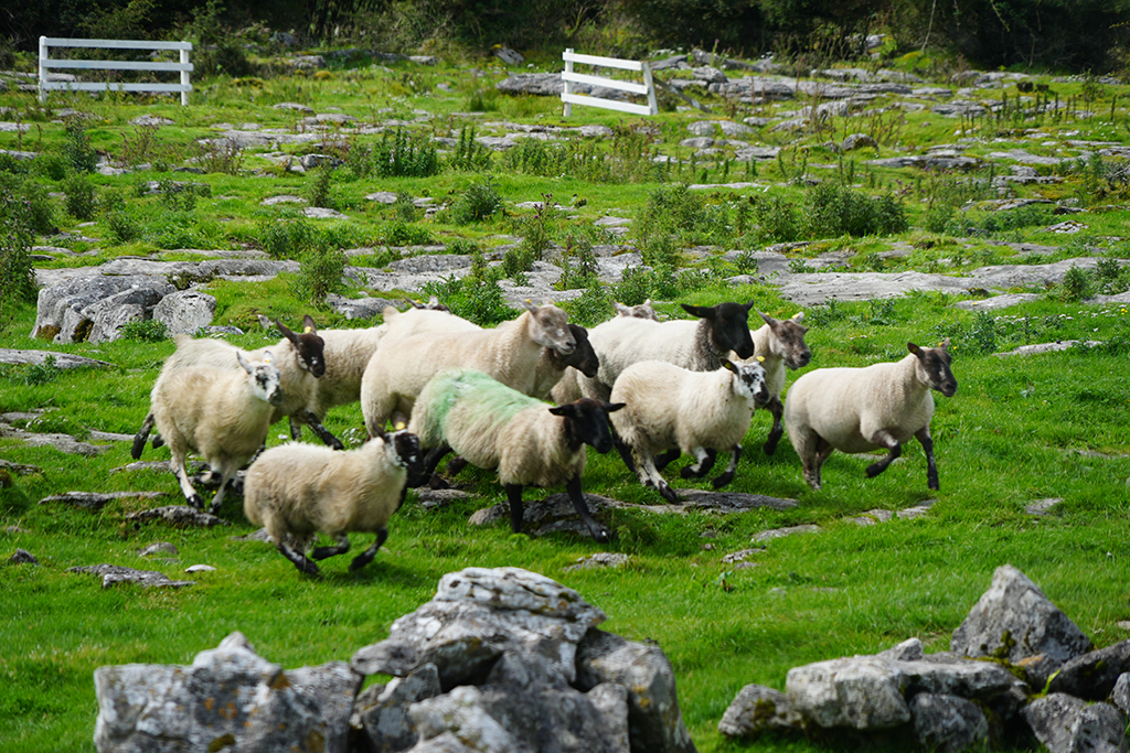 Auf klassische irische Landschaften freuen wir uns heute. Der Himmel hat sich zwar mit reichlich Wolken verkleidet aber fürs Foto ist das oft ganz reizvoll.