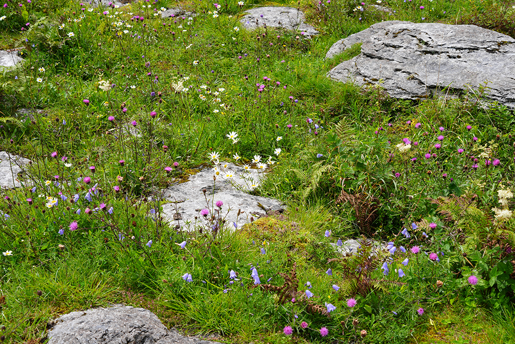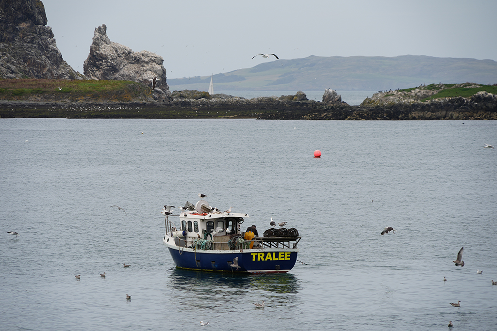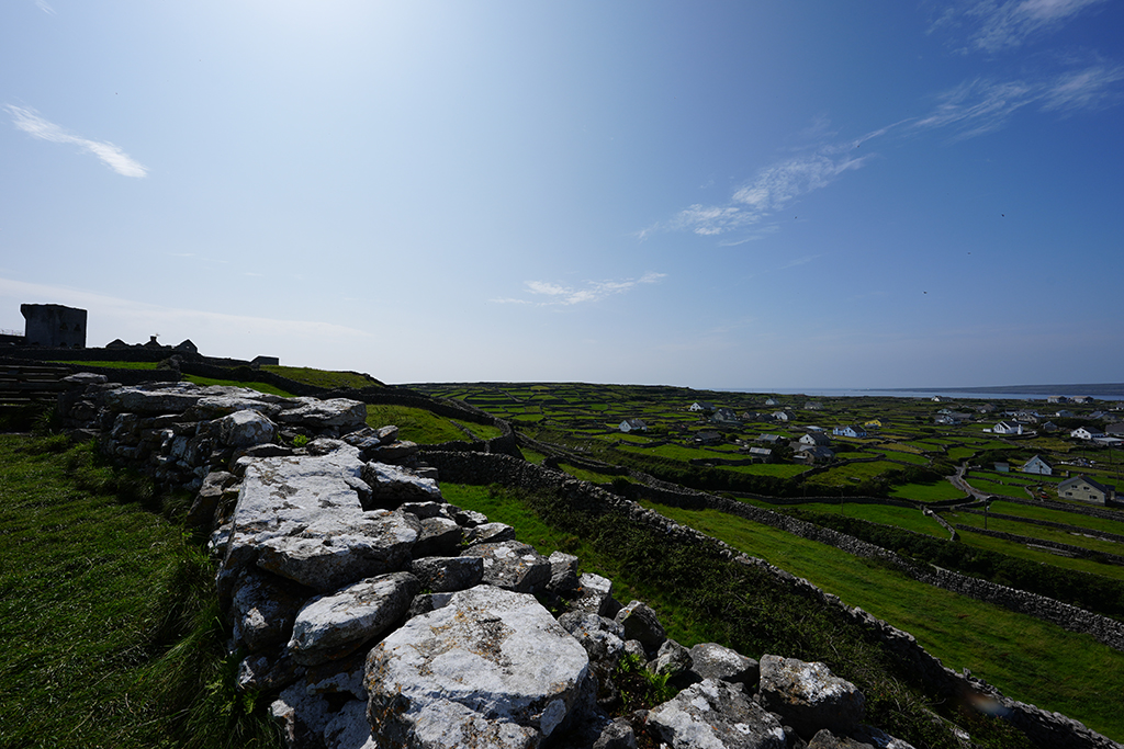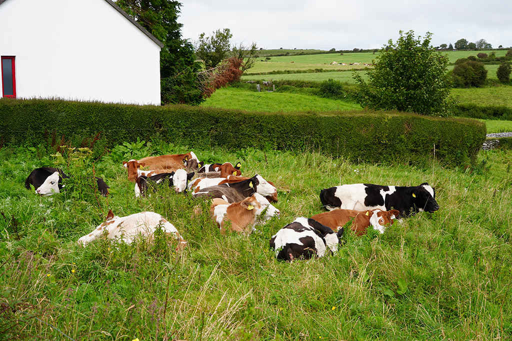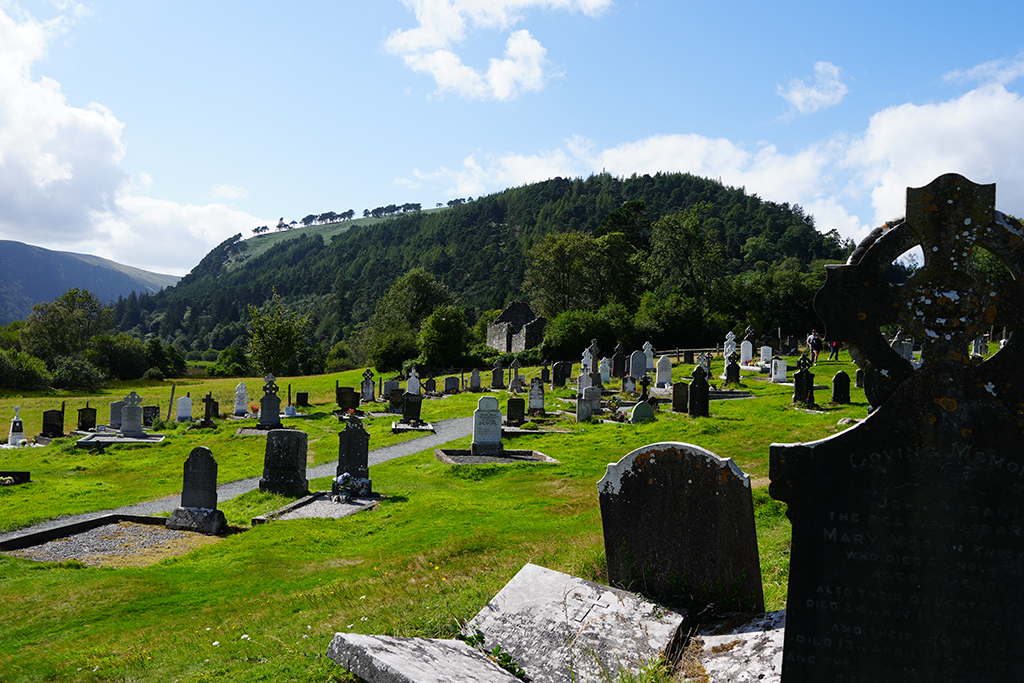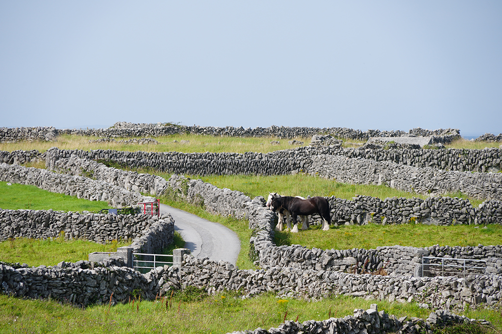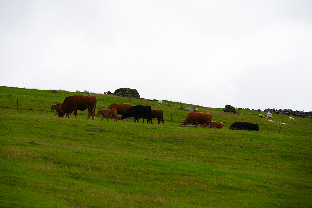 Auf klassische irische Landschaften freuen wir uns heute. Der Himmel hat sich zwar mit reichlich Wolken verkleidet aber fürs Foto ist das oft ganz reizvoll.