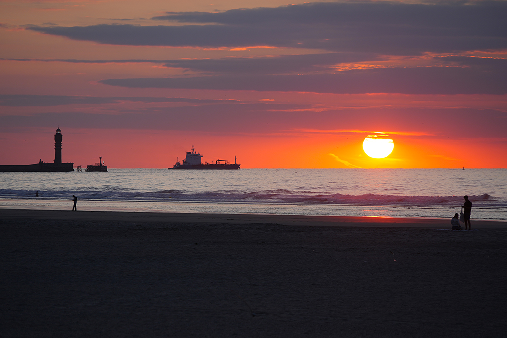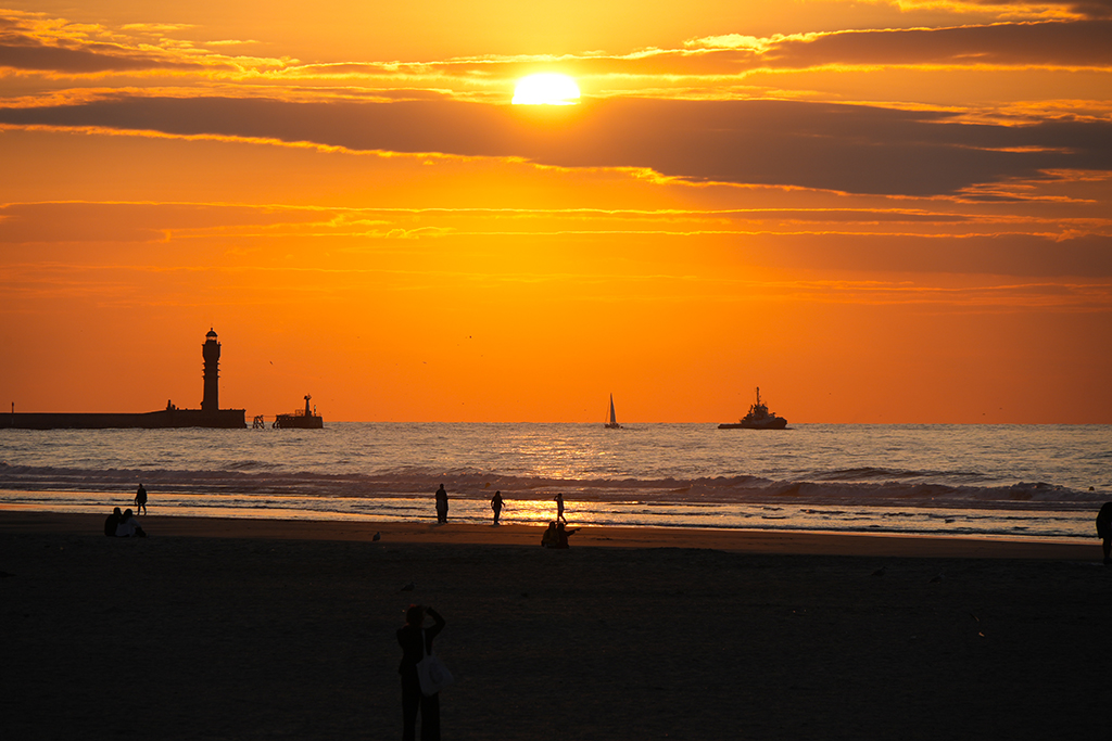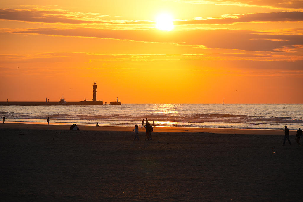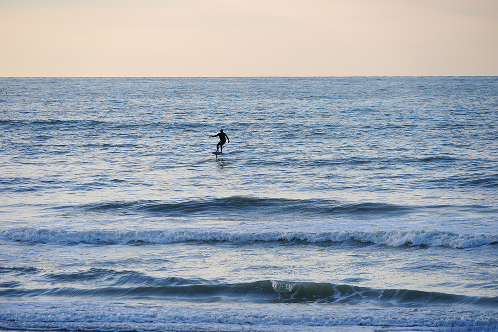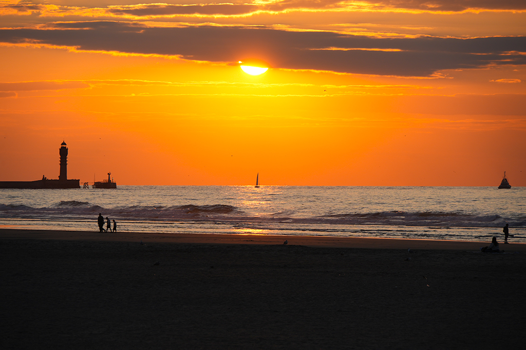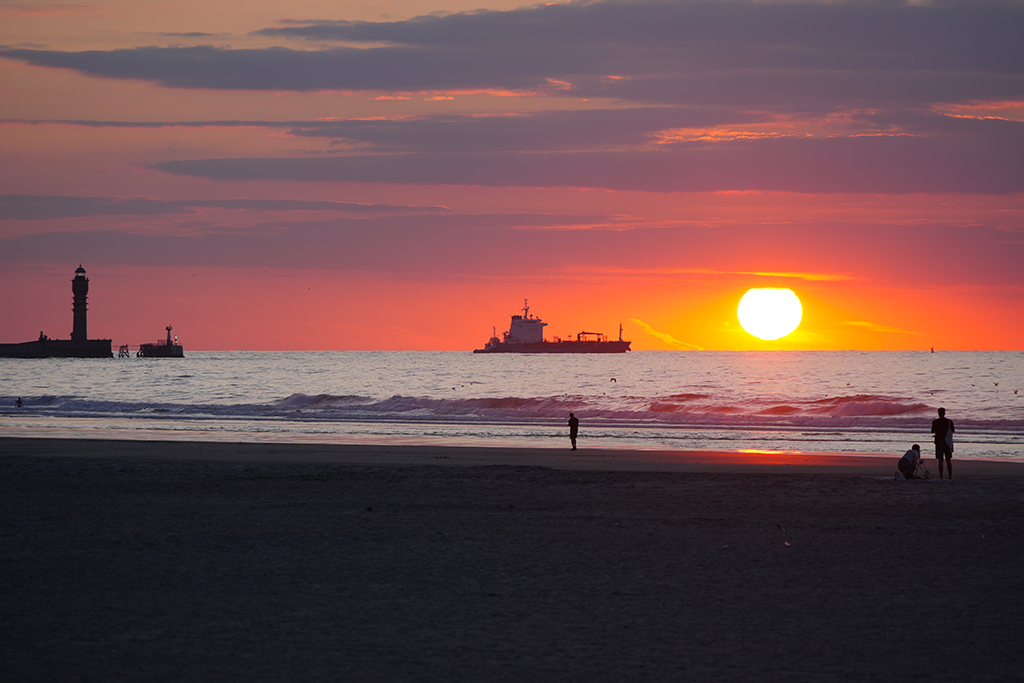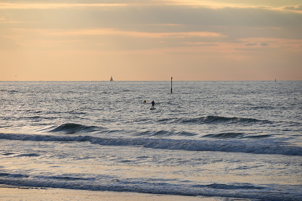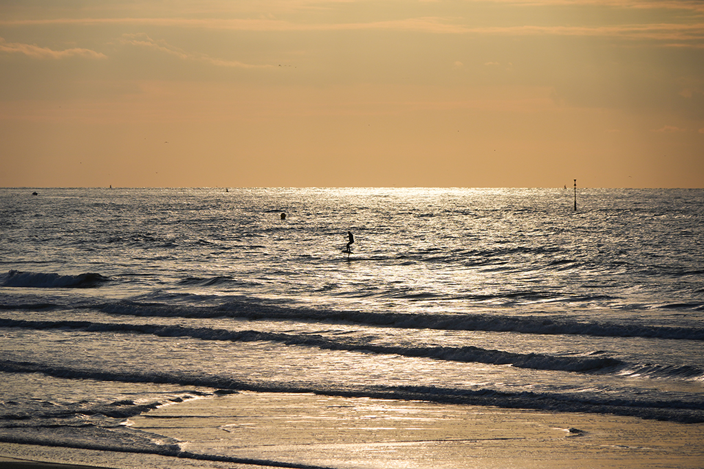 Bis in ca. 60 Minuten das Schauspiel seinen Höhepunkt erreicht haben wird, respektive die Sonne ihren Tiefpunkt, vertreiben wir uns die Zeit mit sinnlosem Beobachten mehr oder weniger sportlichen Treibens an Land und auf dem Wasser entlang der ziemlich ausgedehnten Strand-Promenade.