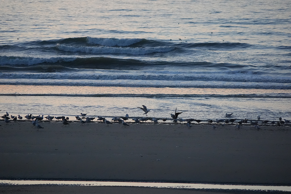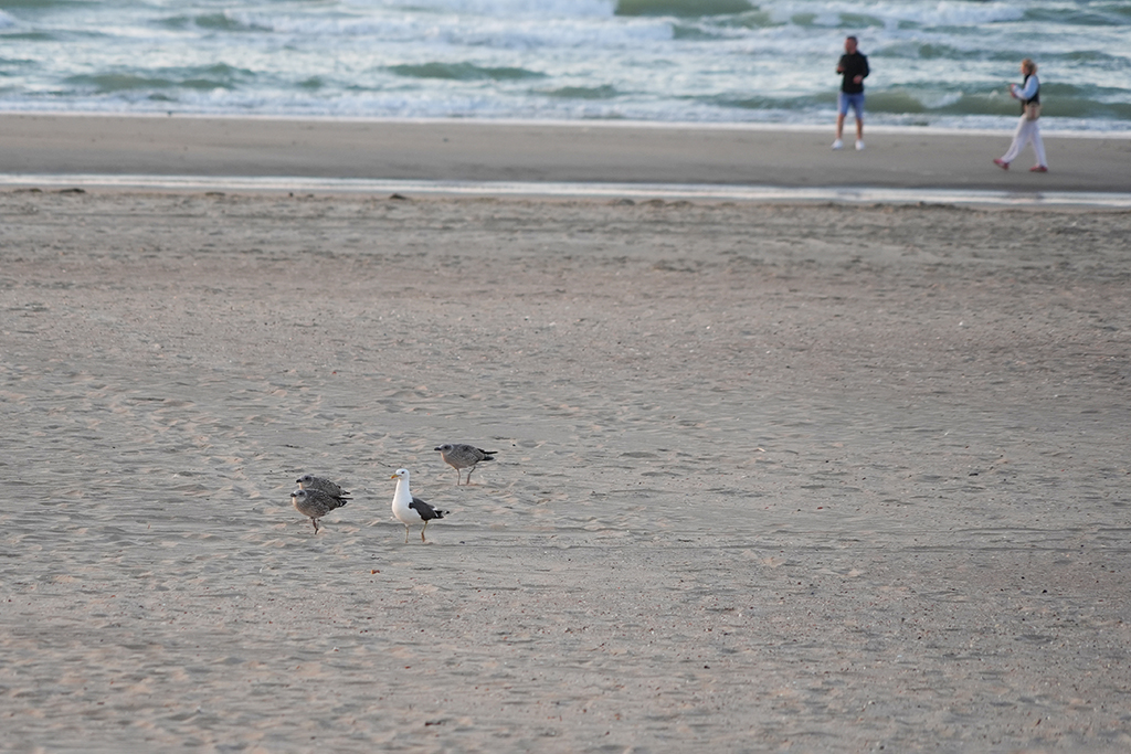 Als wir einen geeigneten Parkplatz – nicht all zu weit entfernt vom Meer – zum Halbübernachten gefunden haben, marschieren wir geradewegs zum Strand, um wenigstens irgendein blogtaugliches Foto als Platzhalter für den heutigen Tag schießen zu können. Wenn’s sonst nix gibt: Möwen gehen immer!