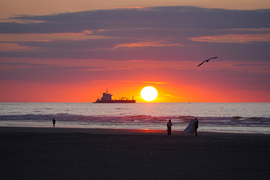 Jetzt beginnt die heiße Phase. Das sprachbunte Stimmendurcheinander verstummt, als die Sonne gleich zischend untergehen wird. Jeder hier am Strand gönnt sich diese Bilder.