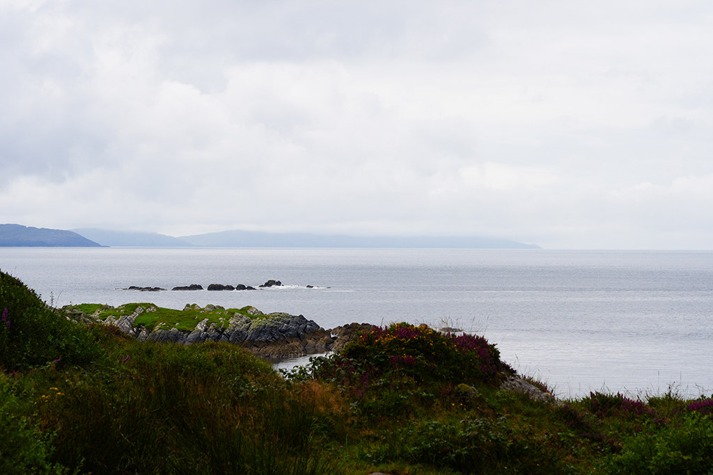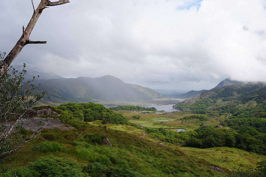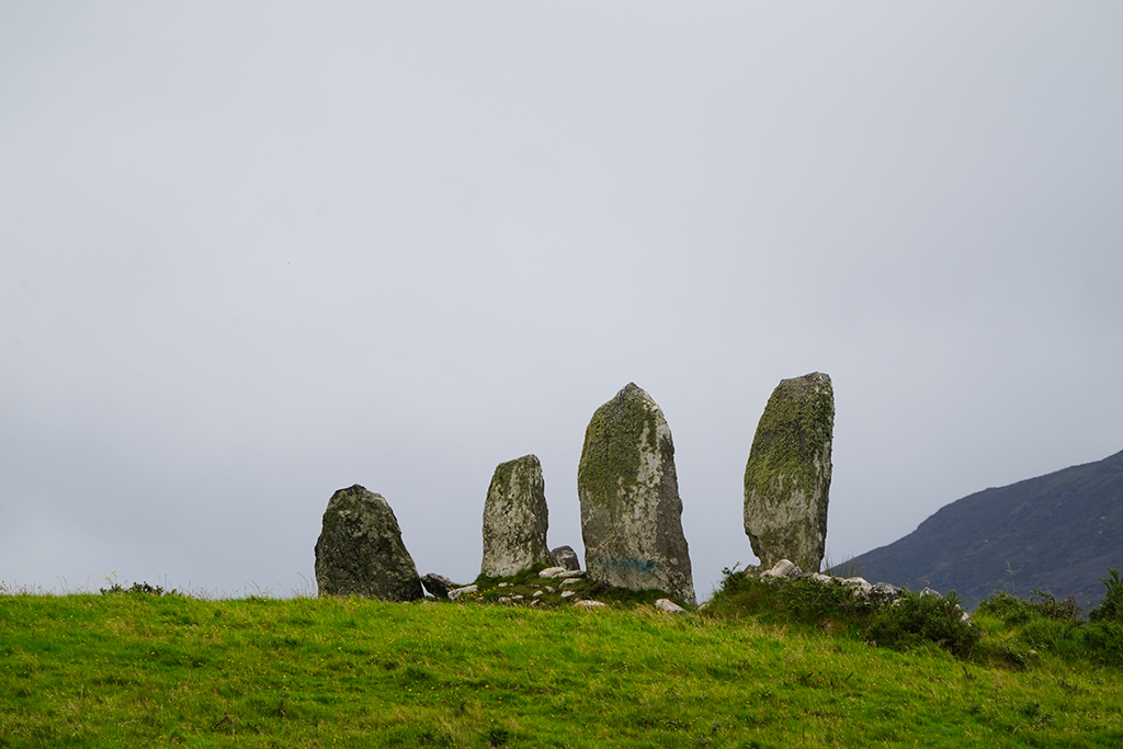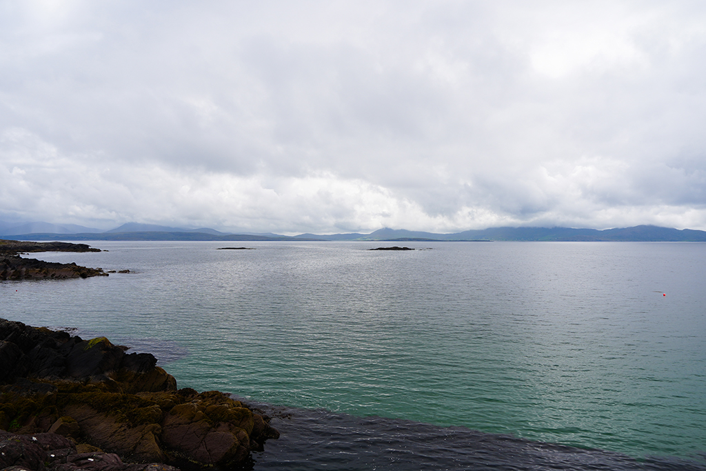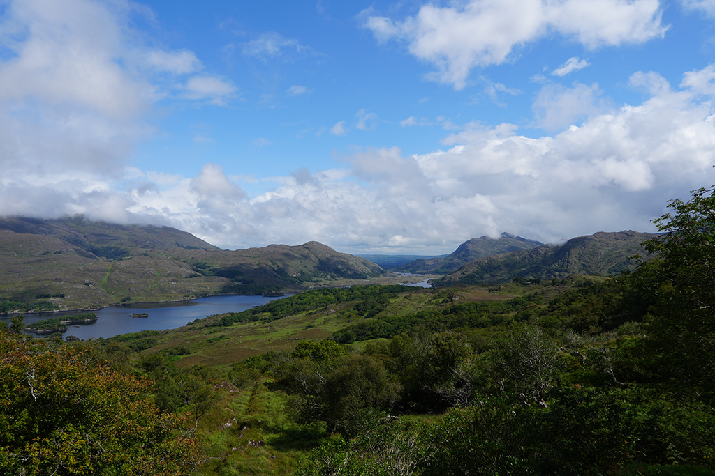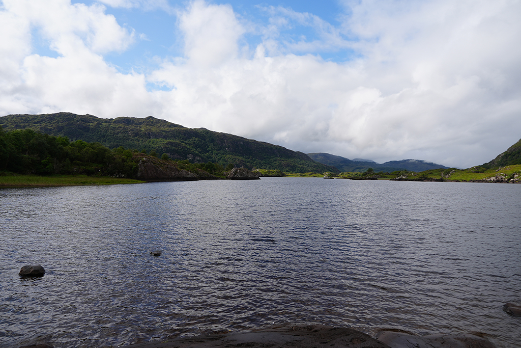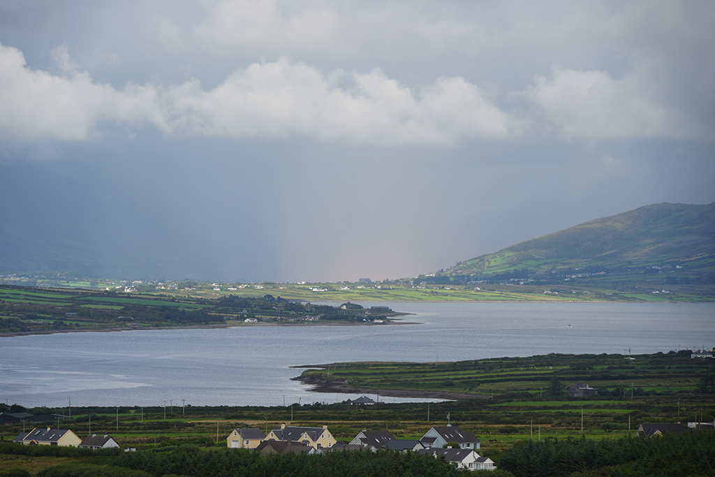 Auf klassische irische Landschaften freuen wir uns heute. Der Himmel hat sich zwar mit reichlich Wolken verkleidet aber fürs Foto ist das oft ganz reizvoll.