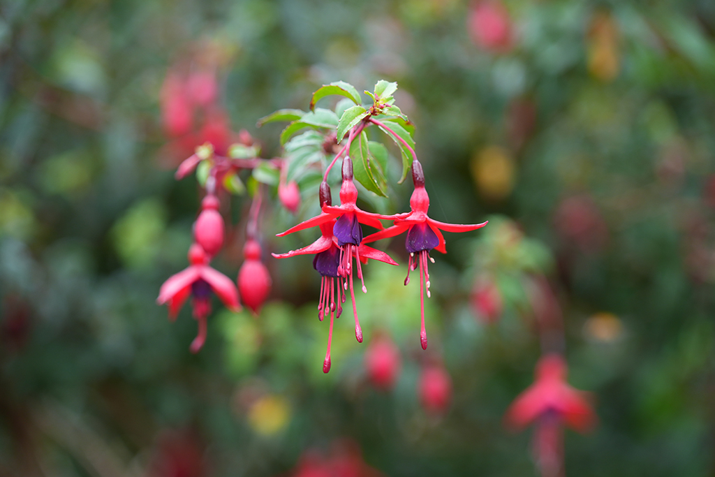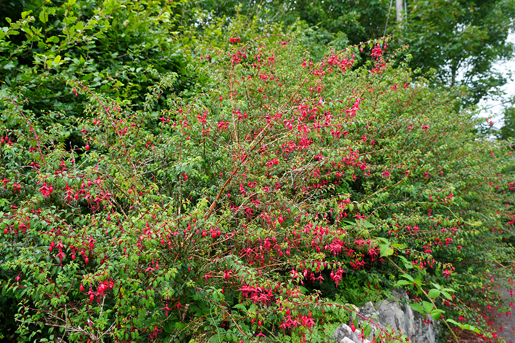 Fuchsien wachsen in ganz Irland wie Unkraut. Oft säumen sie als feuerrote Hecken die Straßen uns Wege.