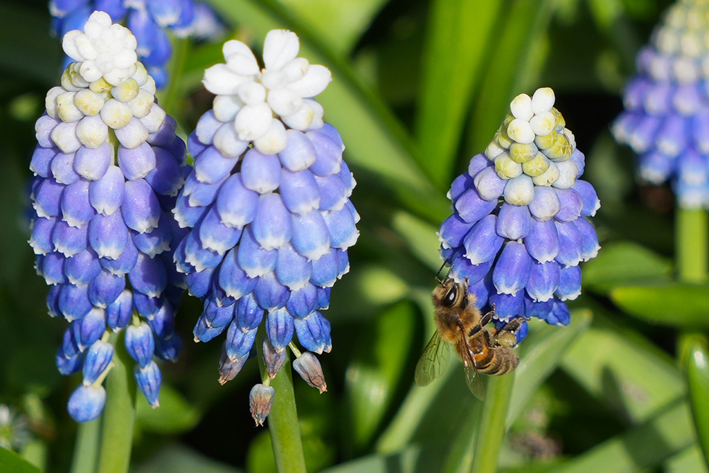 Bienen sind nur an den Hyazinthen zu beobachten. Sie sind übrigens auch die einzigen Blumen, die einen betörenden Duft verströmen.